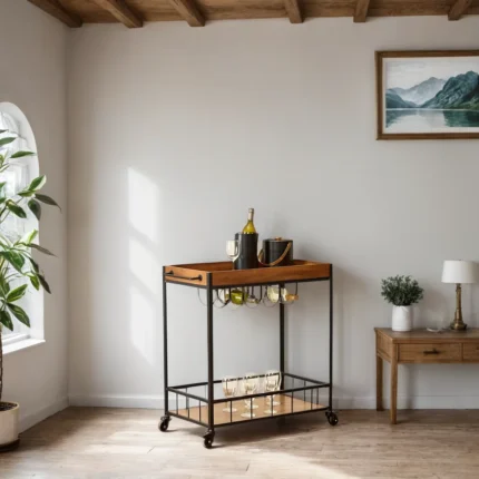 Furndune's Bar Trolley adds a touch of elegance to your space, crafted from premium woods known for their beauty and timeless appeal. - Functional Design: