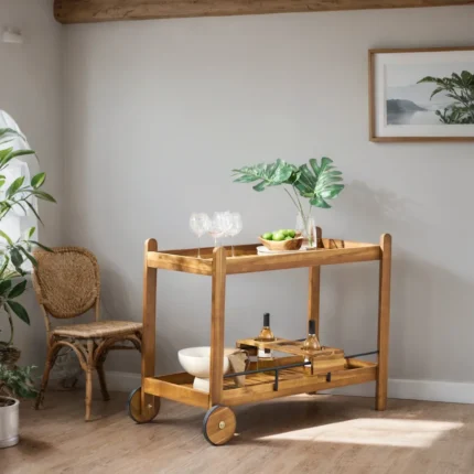 Infuse sophistication into your home entertaining with Furndune’s Wooden Bar Trolley. Crafted from premium materials like Indian Rosewood, Acacia Wood, Teak Wood, and Mango Wood, each trolley embodies elegance and durability. Meticulously designed with ample storage, sleek surfaces, and rolling functionality, our bar trolleys offer a stylish and practical solution for serving drinks and showcasing your collection. Immerse yourself in the rich textures of solid wood, adding a touch of luxury to your mobile bar setup. Choose Furndune for bar trolleys that seamlessly combine craftsmanship and functional design, elevating your hosting experience.