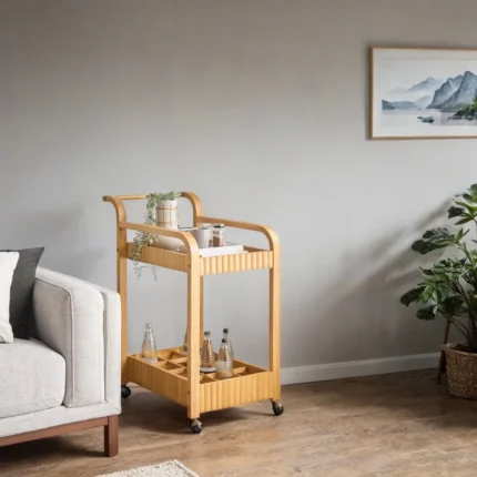 Furndune's Wooden Bar Trolley is a celebration of natural beauty and craftsmanship. Each trolley showcases the distinct grains and textures of premium woods, adding a warm and inviting touch to your home. The versatile design ensures it effortlessly harmonizes with various interior styles, making it an ideal choice for both contemporary and classic settings.
