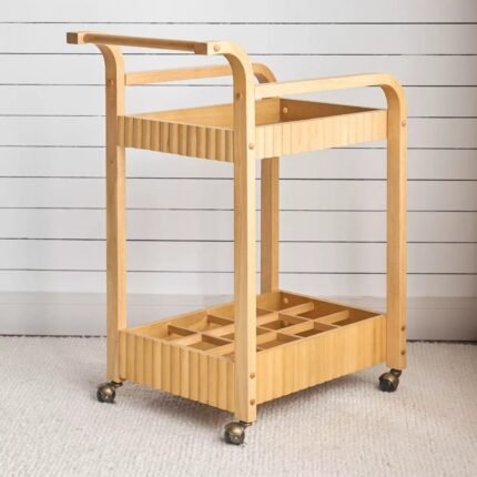 Rustic Elegance: Furndune's Wooden Bar Trolley