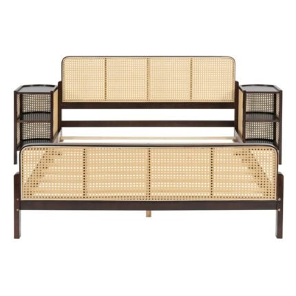 Refined Functionality Solid Wood Valmont Rattan Platform Bed with Bedside