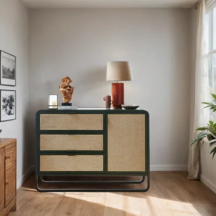 Original price was: ₹99,999.00.₹56,399.00Current price is: ₹56,399.00.Elevated Lifestyle Solid Wood Rattan Chest of Drawers