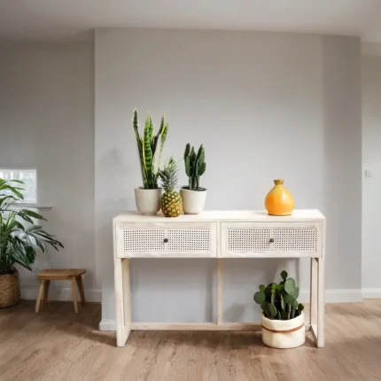Crafted for durability, Furndune's Wooden Console Tables provide a sturdy foundation for decor items, vases, or keys, creating a focal point that sets the tone for your home. The diverse wood selection ensures that you can choose a console table that seamlessly complements your interior style, creating a cohesive and inviting atmosphere.