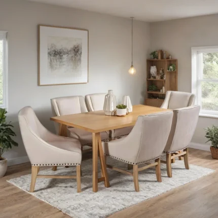 Original price was: ₹219,999.00.₹105,599.00Current price is: ₹105,599.00.Larkhaven Fabric Upholstered and Natural Solid Wood Dining Set