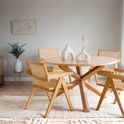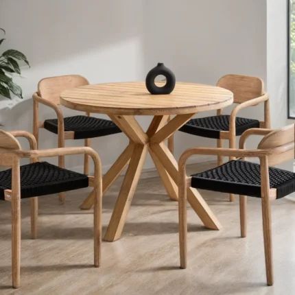 Original price was: ₹157,899.00.₹105,699.00Current price is: ₹105,699.00.Kensfield Round Dining Table Set and 4 Chairs with Armrests
