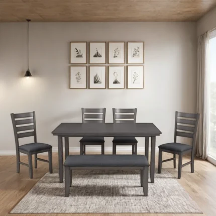 Original price was: ₹229,999.00.₹100,799.00Current price is: ₹100,799.00.Stylish Grey Finished Solid Wood Kingswell Dining Set with Bench