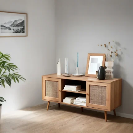 Original price was: ₹89,999.00.₹44,999.00Current price is: ₹44,999.00.Functional Elegance Twilight Rattan TV Cabinet in Solid Wood
