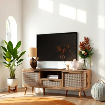 Original price was: ₹79,000.00.₹52,999.00Current price is: ₹52,999.00.Functional Elegance Twilight Rattan TV Cabinet in Solid Wood