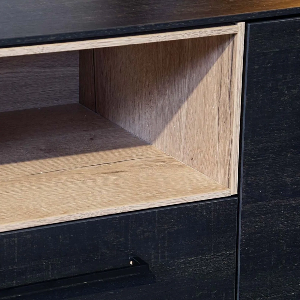 Wine cabinets typically have multiple compartments or shelves to store wine bottles. Some cabinets also include wine glass racks, drawers, or additional storage space for wine accessories like corkscrews and glasses.