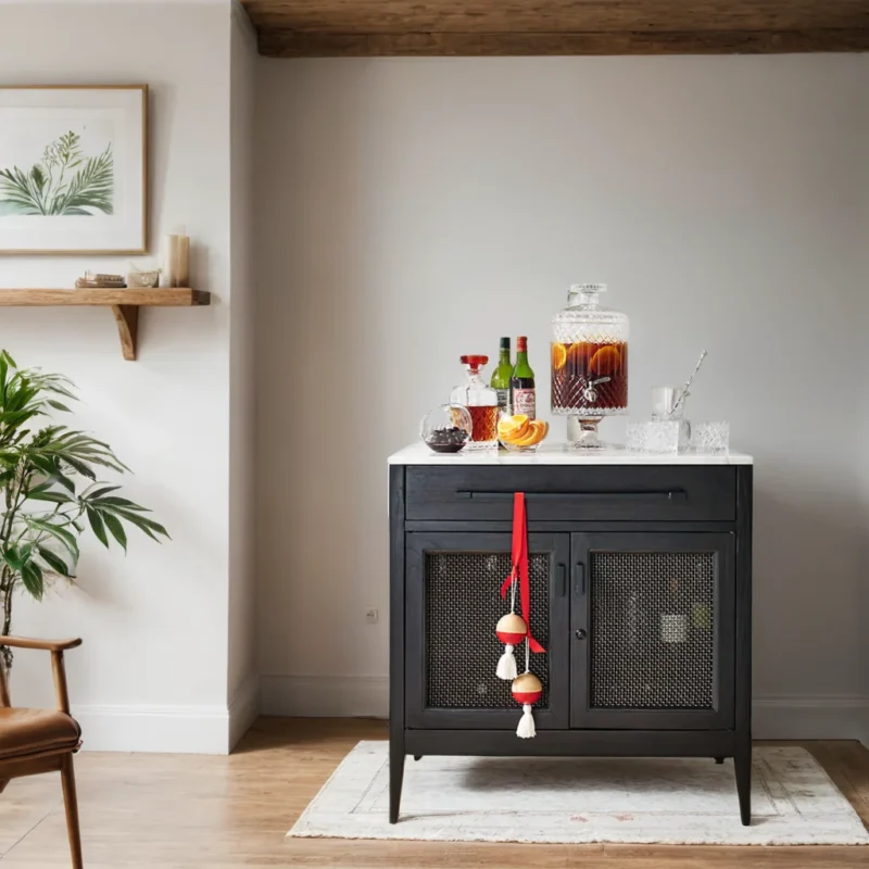 Beautifully Designed Black Finish Ivoryblend Bar Cabinet
