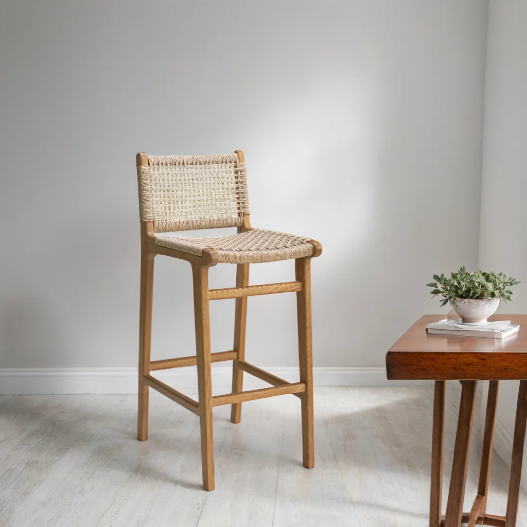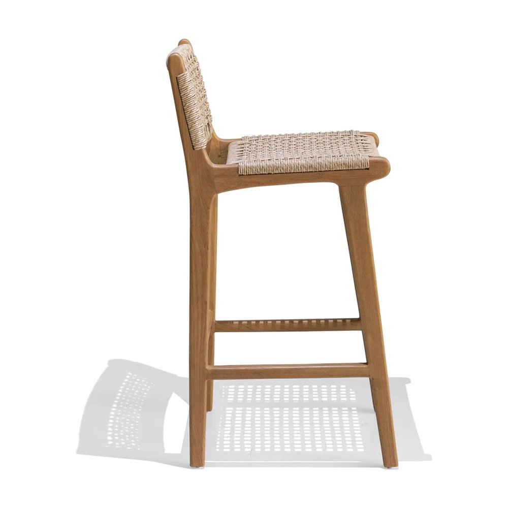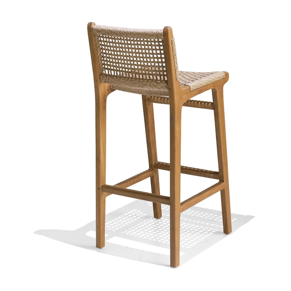 The Ambertrail Bar Chair is made of solid wood with synthetic rattan weaving on the seat and backrest, creating a strong but carefully detailed stool perfect for your indoor or outdoor bar area. Whether a short stop for coffee or longer periods of entertaining the Lennox Bar Chair is a beautiful addition to any home or venue, both indoors and outdoors.