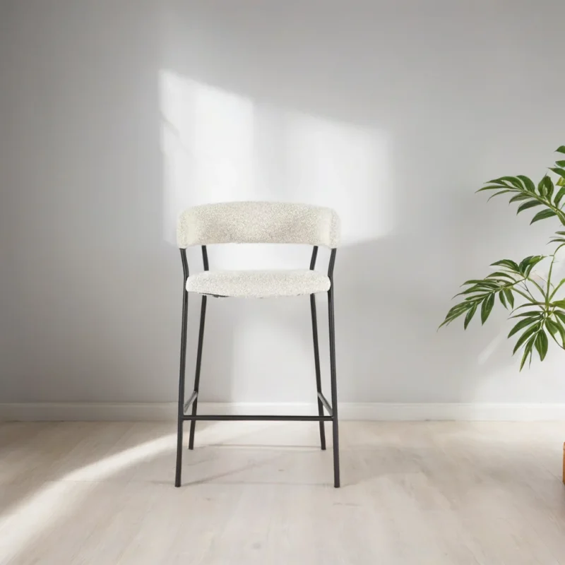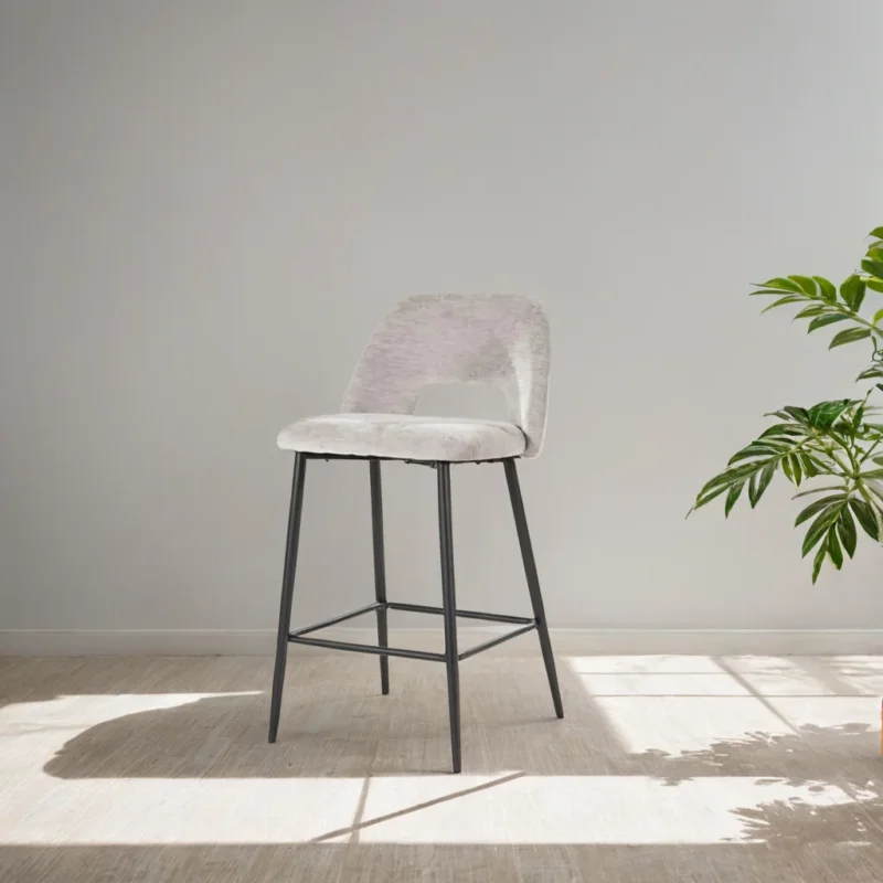 Bayview Bar Chair is a trendy chair covered with a piece of fine fabric and has a very solid metal base. The bucket chair has armrests and a high backrest, making it suitable for long, pleasant evenings at the bar table.