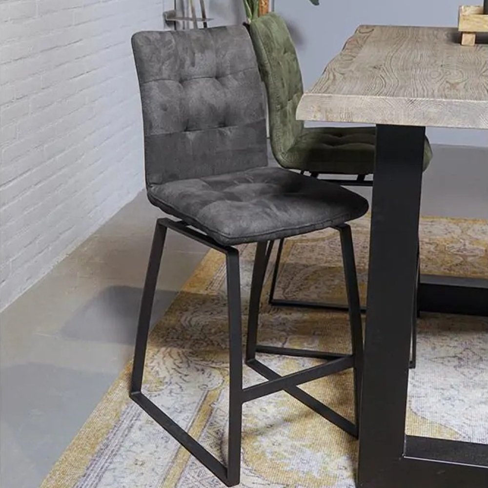 Harborbend Bar Chair is a trendy chair covered with a piece of fine fabric and has a very solid metal base. The bucket chair has armrests and a high backrest, making it suitable for long, pleasant evenings at the bar table.
