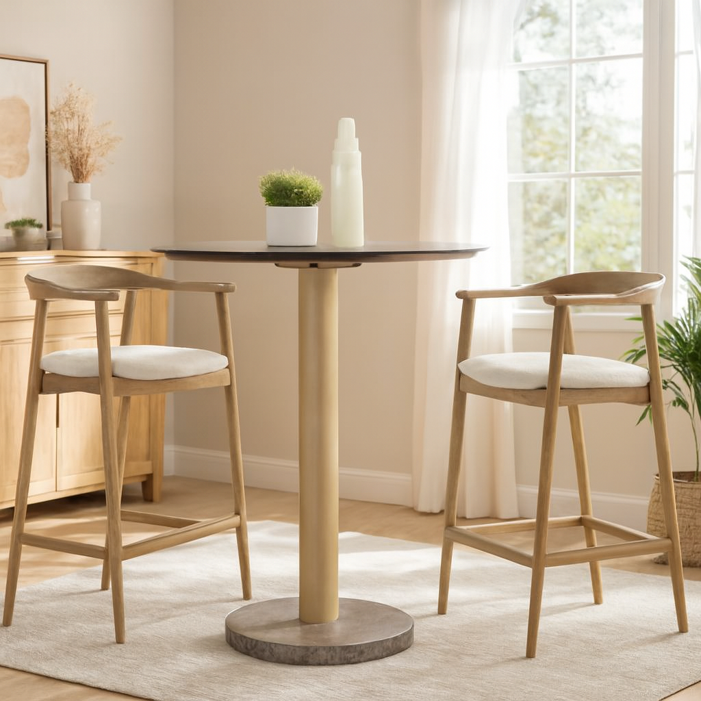 An alluring mid-century counter chair that embraces the beauty of simplicity. Featuring a comfortable, quilted cushion, complemented by a solid wood frame, it’s the perfect perch for a bar, morning coffee, casual meals, or catching up with friends. The metal footrest provides a durable and convenient place to rest your feet.
