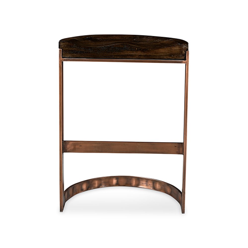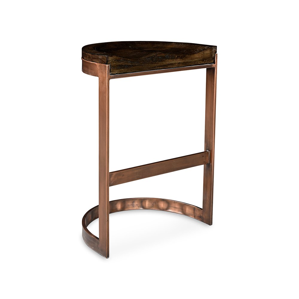 The Lanestone counter stool offers a carved mango wood seat and glam copper detailing. With great comfort and design, it’s perfect for any counter area.