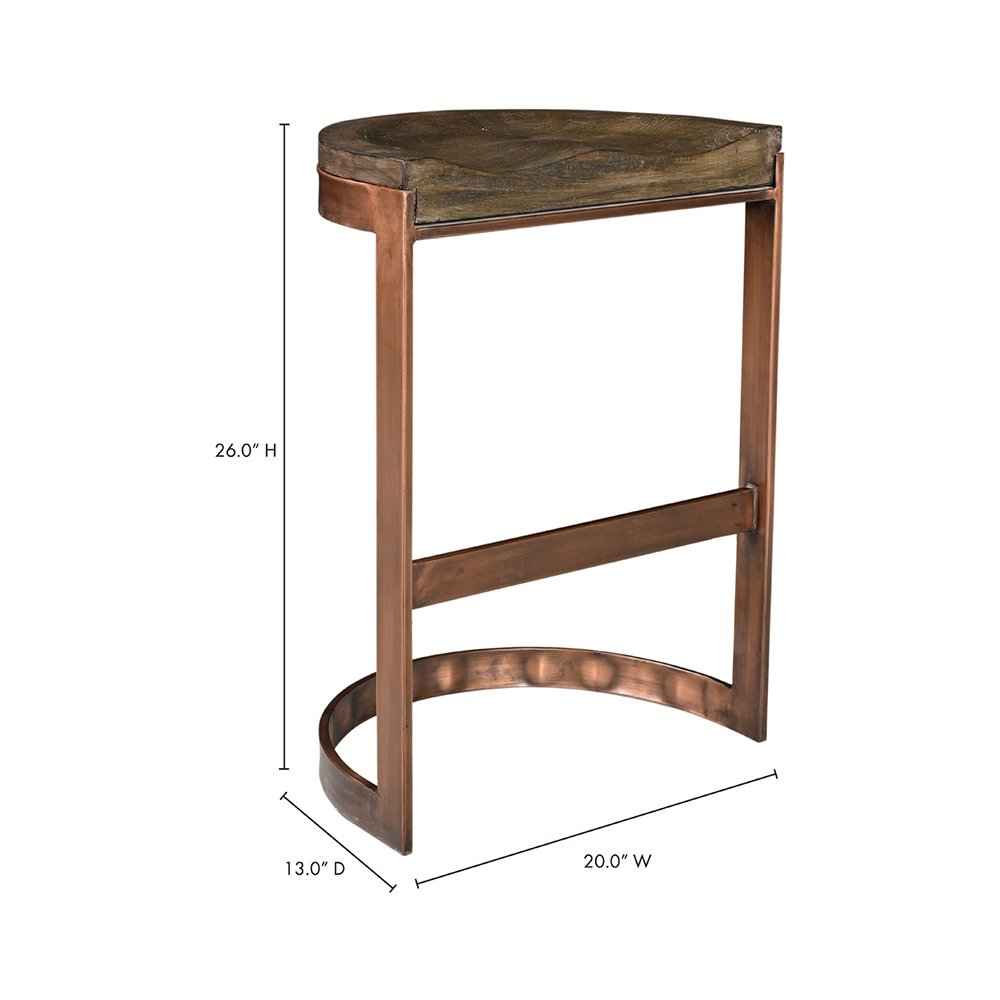 With glam copper detailing, the Lanestone Counter Stool gives a modern edge to the rustic wooden seat. A strong iron base gives an airy feel to your bar area, while a solid mango wood is carved out giving the seat an extra element of comfort. Perfect for any bar area or counter.