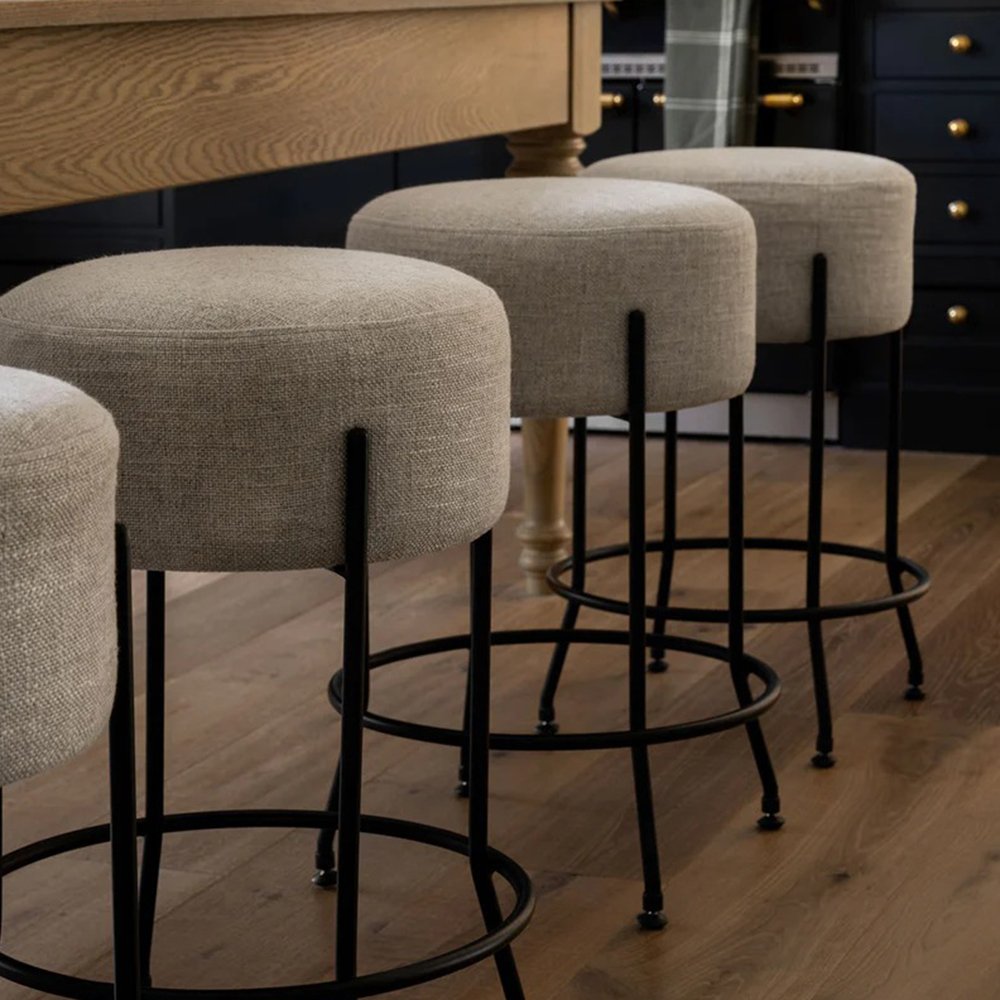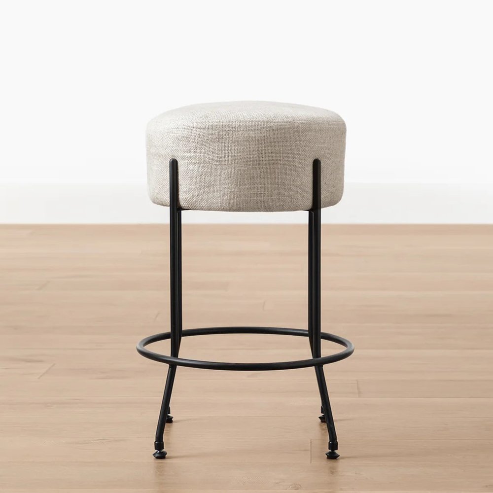 Shapely and distinct, our Sandrift Counter Stool offers a modern and industrial-inspired aesthetic to kitchen seating. On a forged iron base, the circular seat is upholstered with a coated fabric that makes this stool durable and versatile in your home.