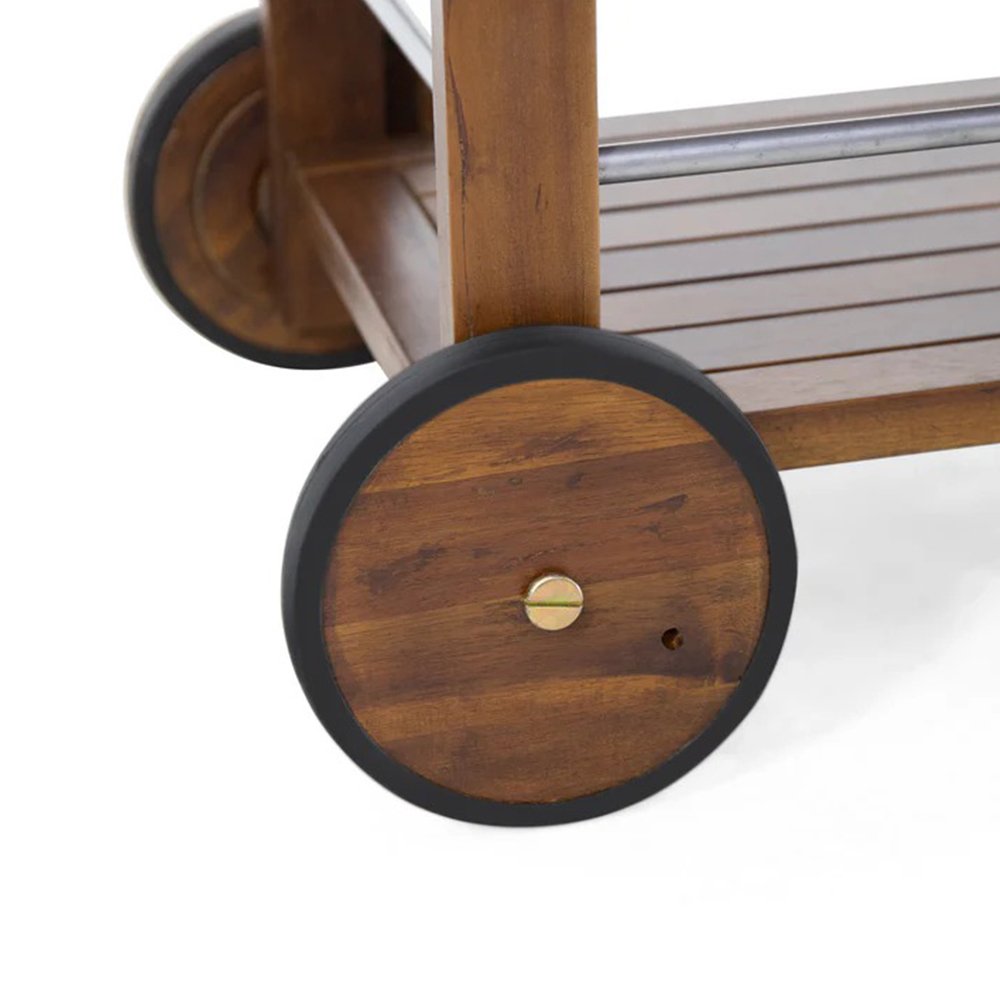 WEATHER RESISTANT: This bar cart is designed and tested to resist mild weather conditions. We always advise covering, storing, or providing other protection to our furniture in the event of heavy or repeated exposure to the elements, including water and UV rays.