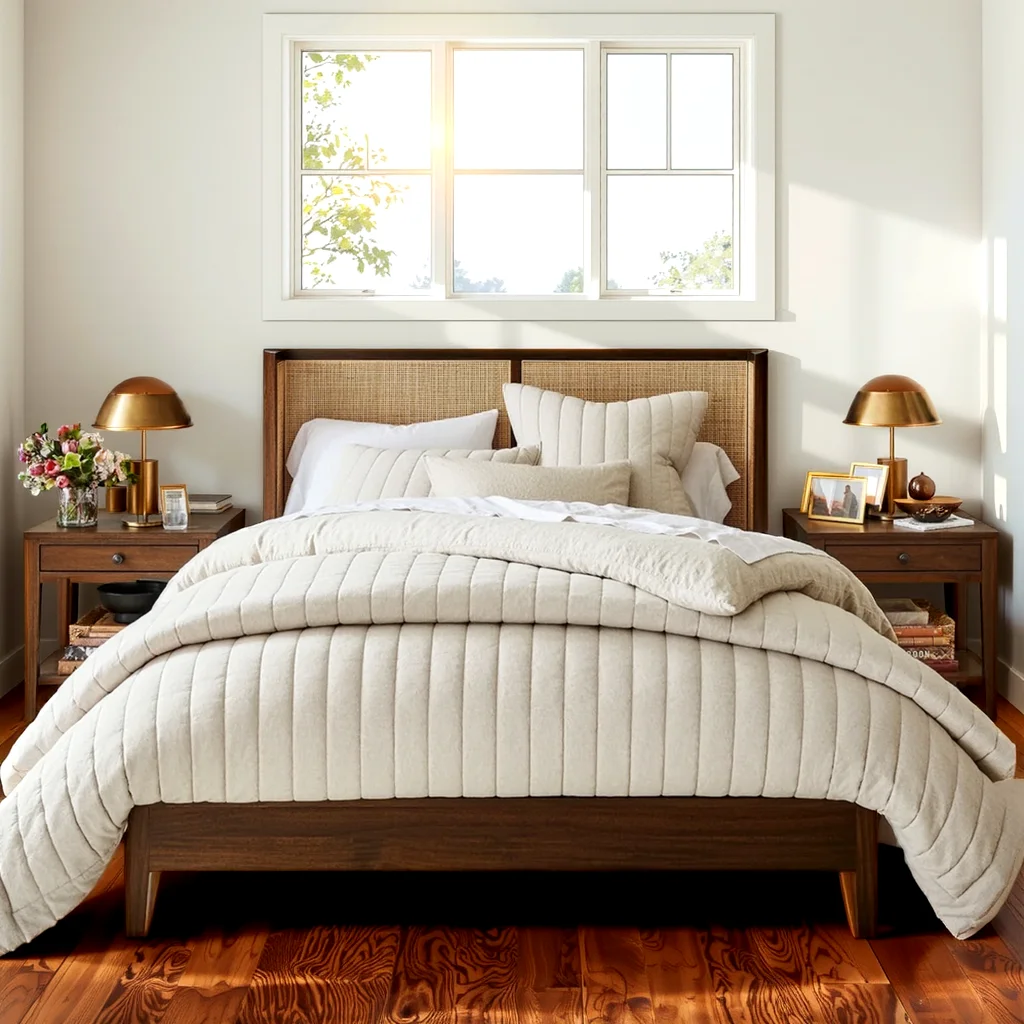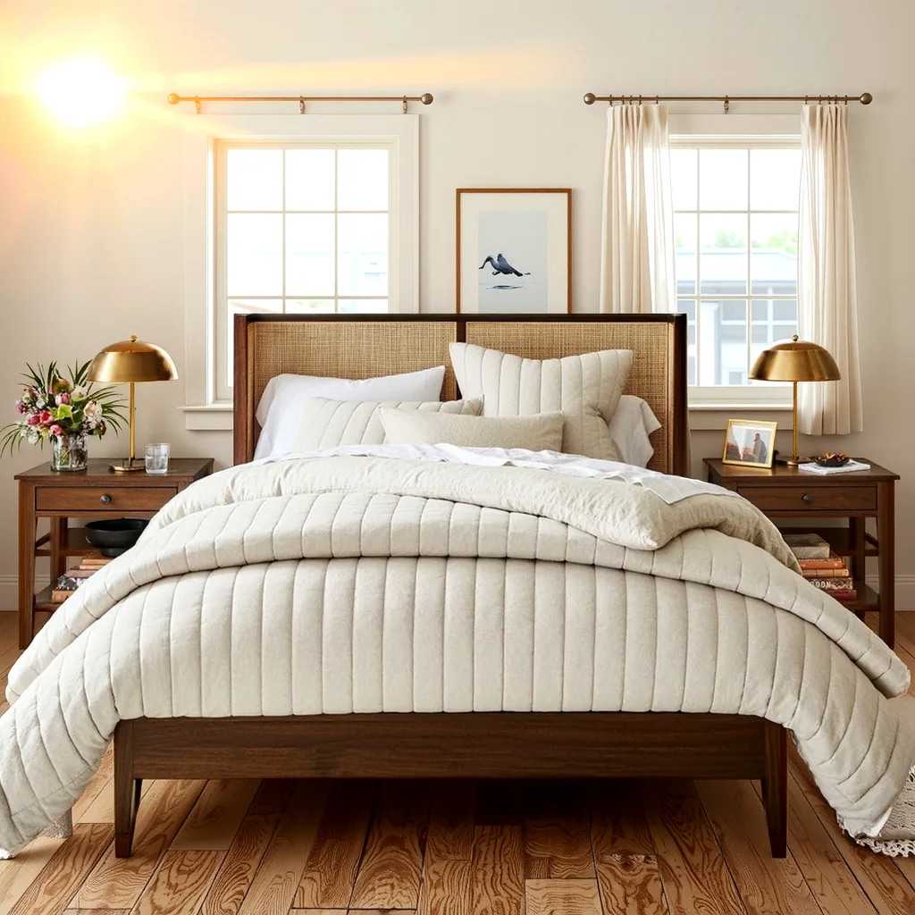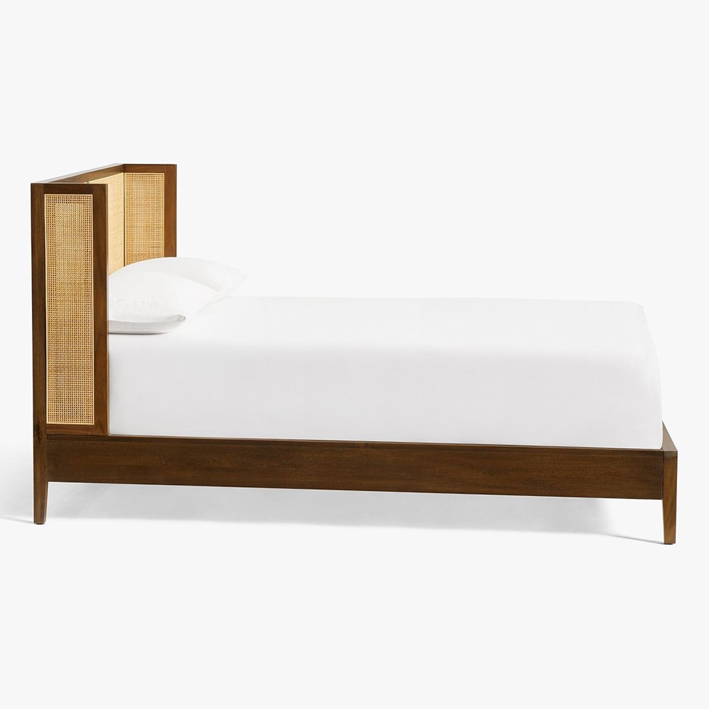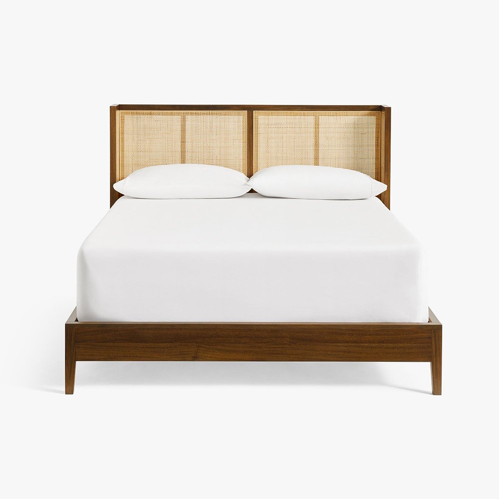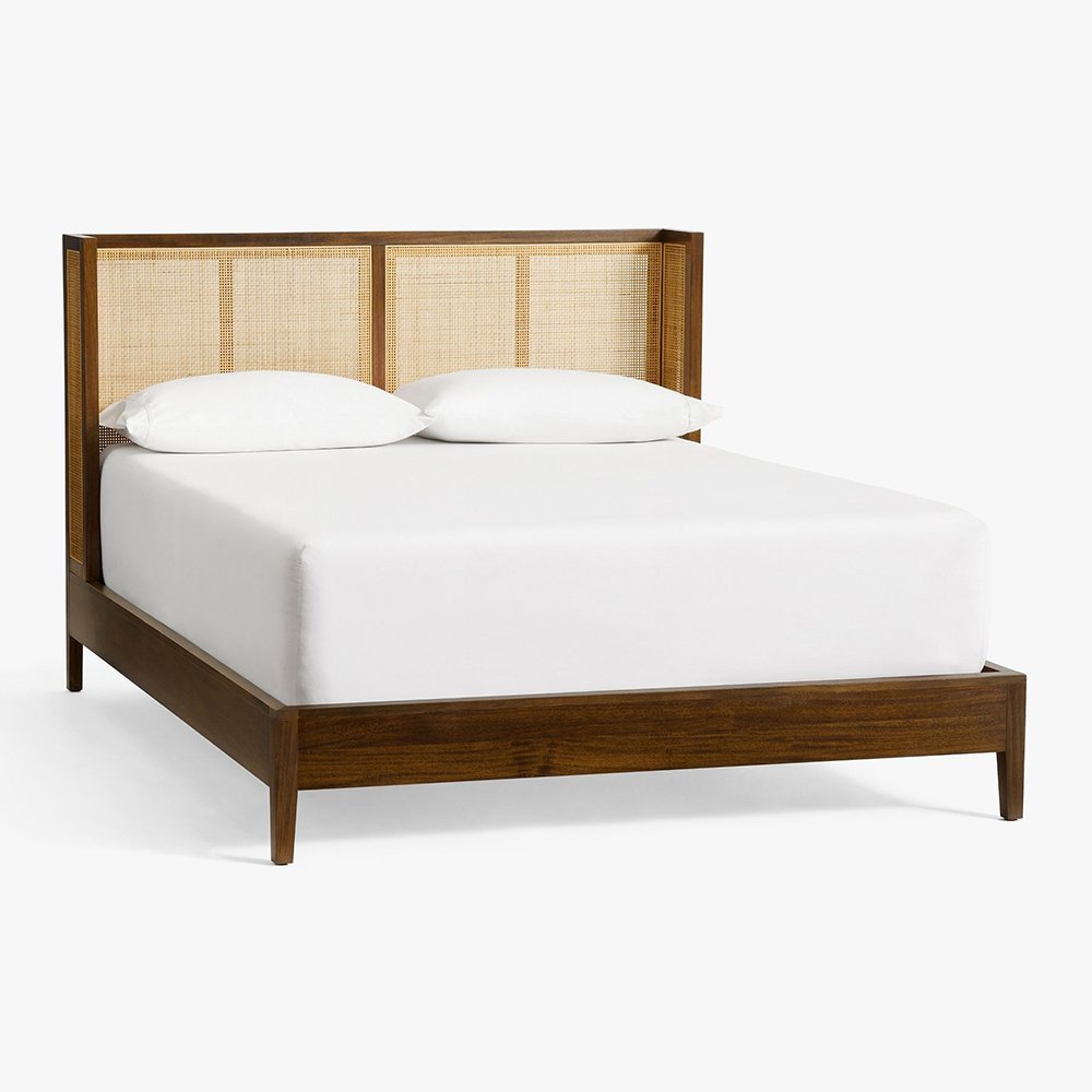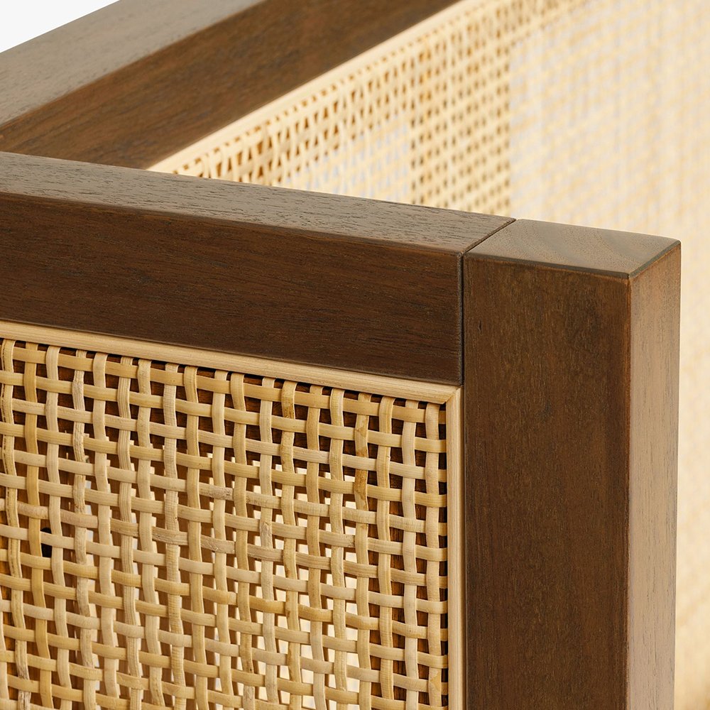 ​​Our Wellington Collection updates the traditional shelter bed with clean lines and textured caning. Crafted from acacia, its beautiful wood grain complements the simplicity of its form. We love the cozy yet elegant look this adds to the room.