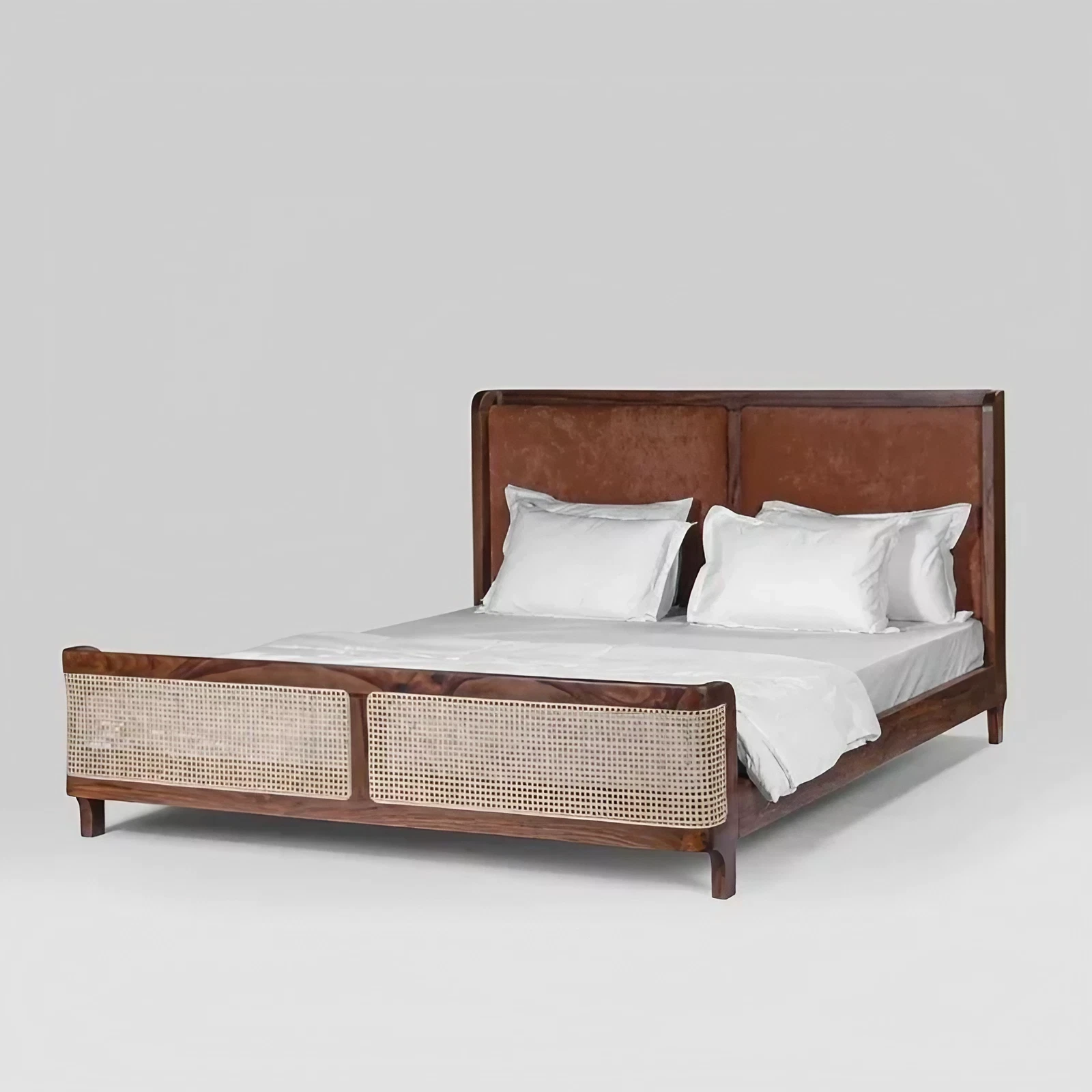 Stylish Solid Wood Bellmont Bed With Rattan