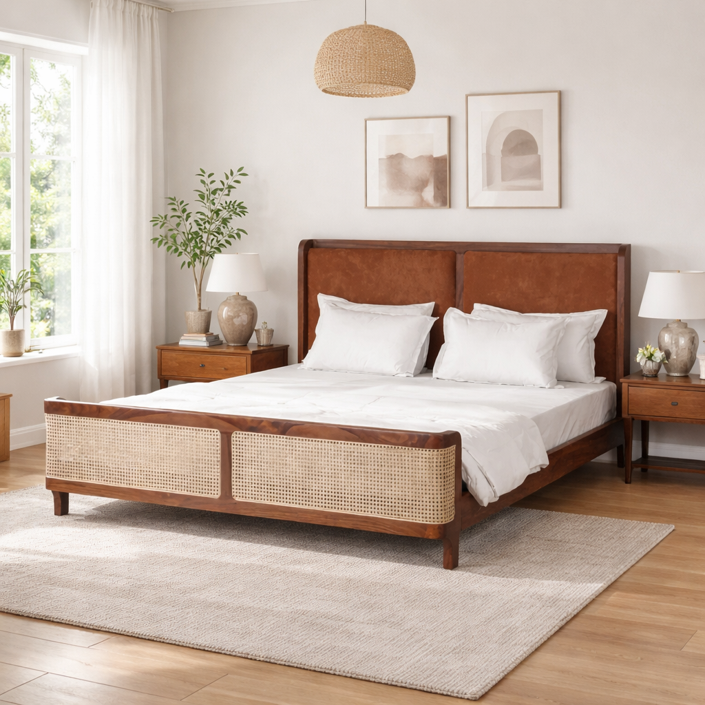 Exotic Solid Wood Claybourne Bed with Rattan Price range: ₹71,499.00 through ₹76,599.00
