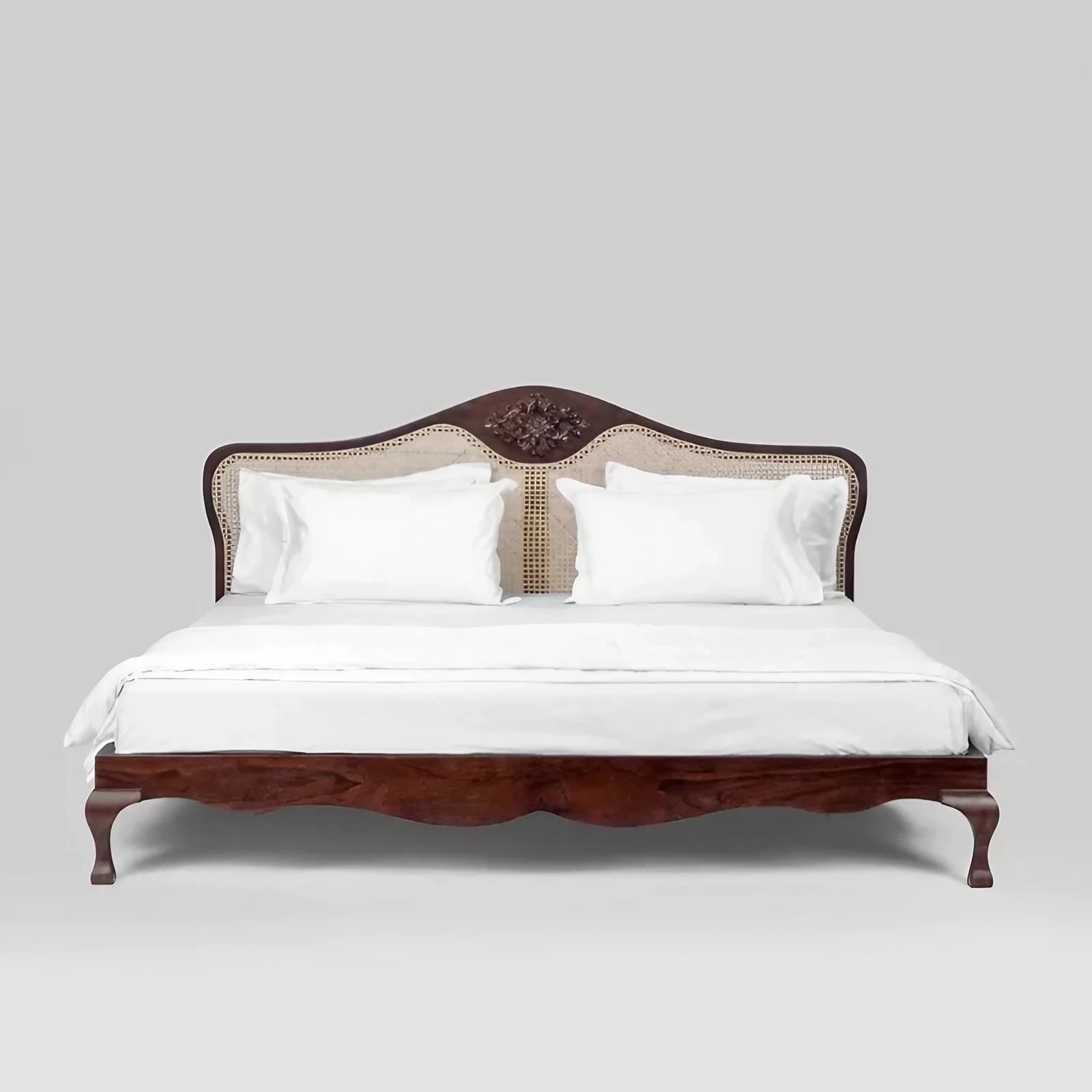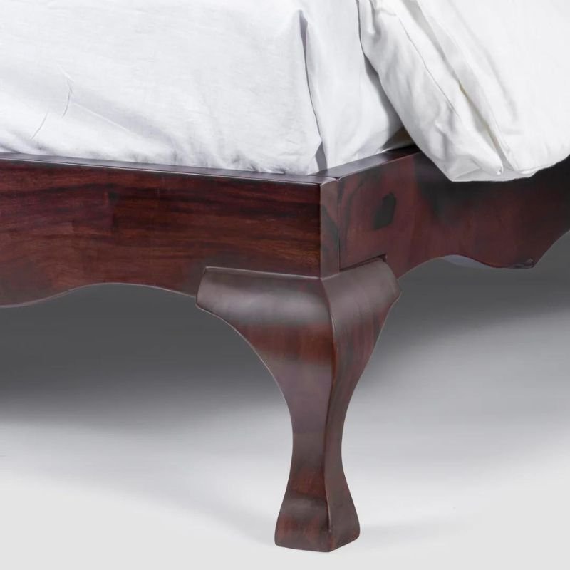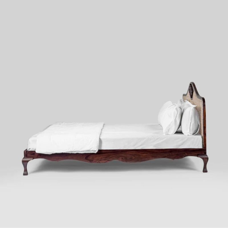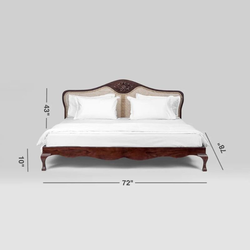 This bed with its curved edges and legs; imperial, elegant carving at the center of the headboard, and cane detailing is everything a royal bed is made of, giving it’s regal name- Claybourne.