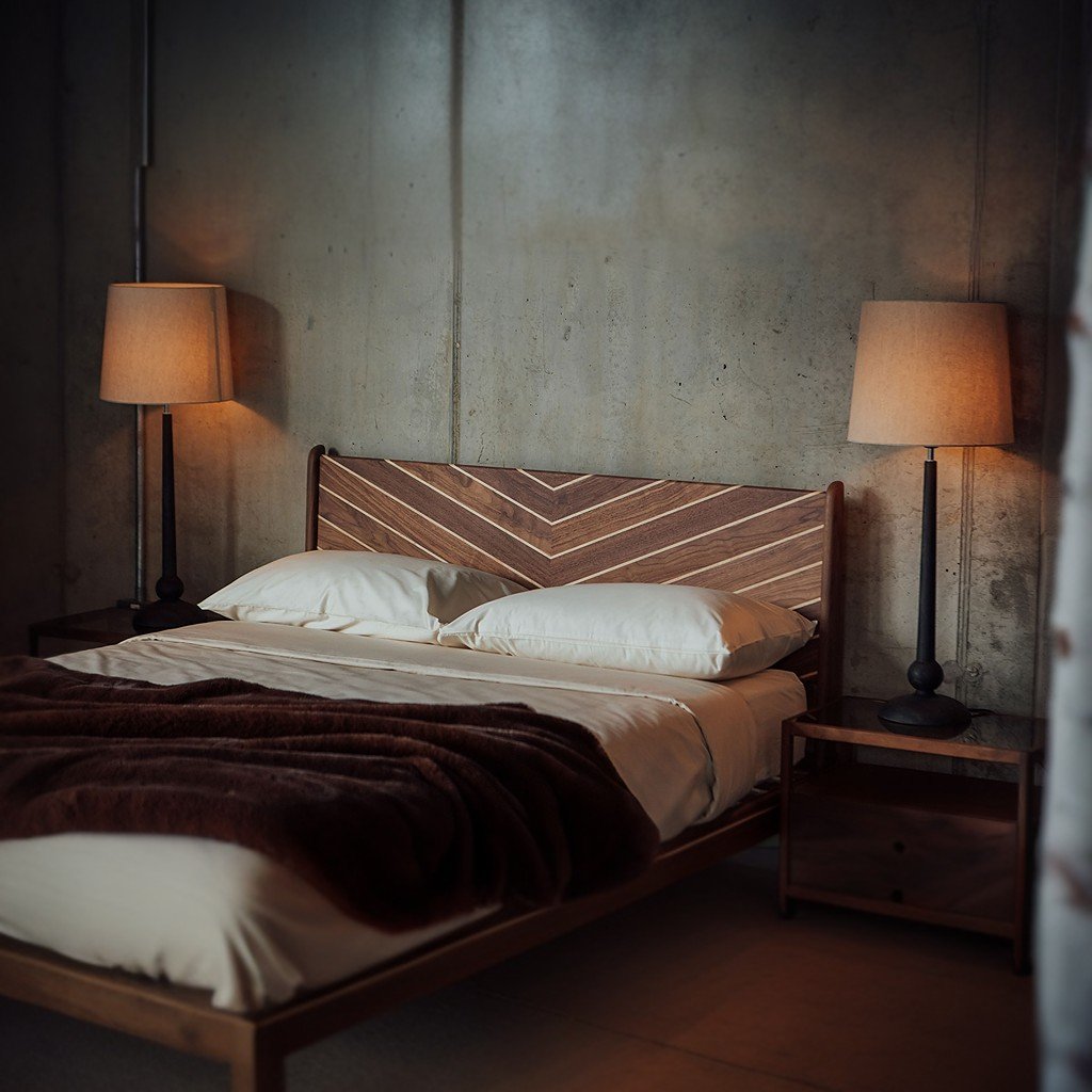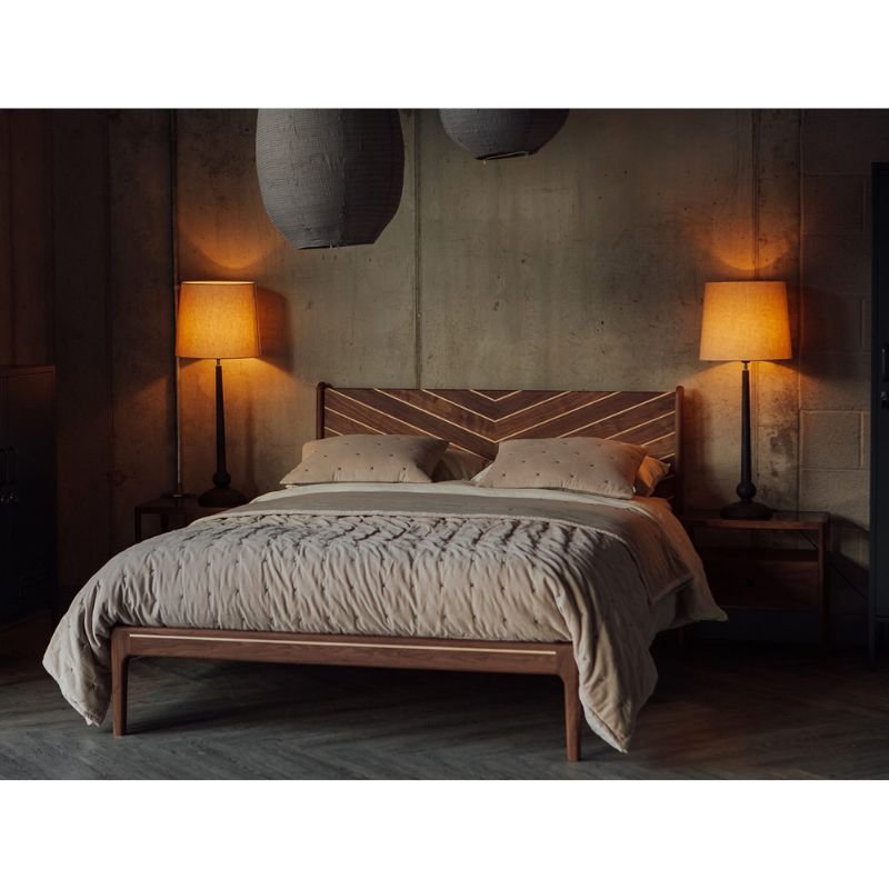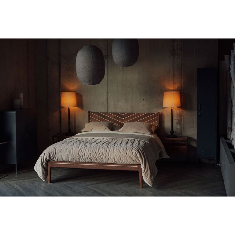 A special take on our classic Devonshire Bed base. This edition is the same beautiful, handmade, solid wood bed, but draws attention to the headboard chevron pattern with contrast timber details between the panels. The contrast timber is also used as highlights to the side rails and foot rail.