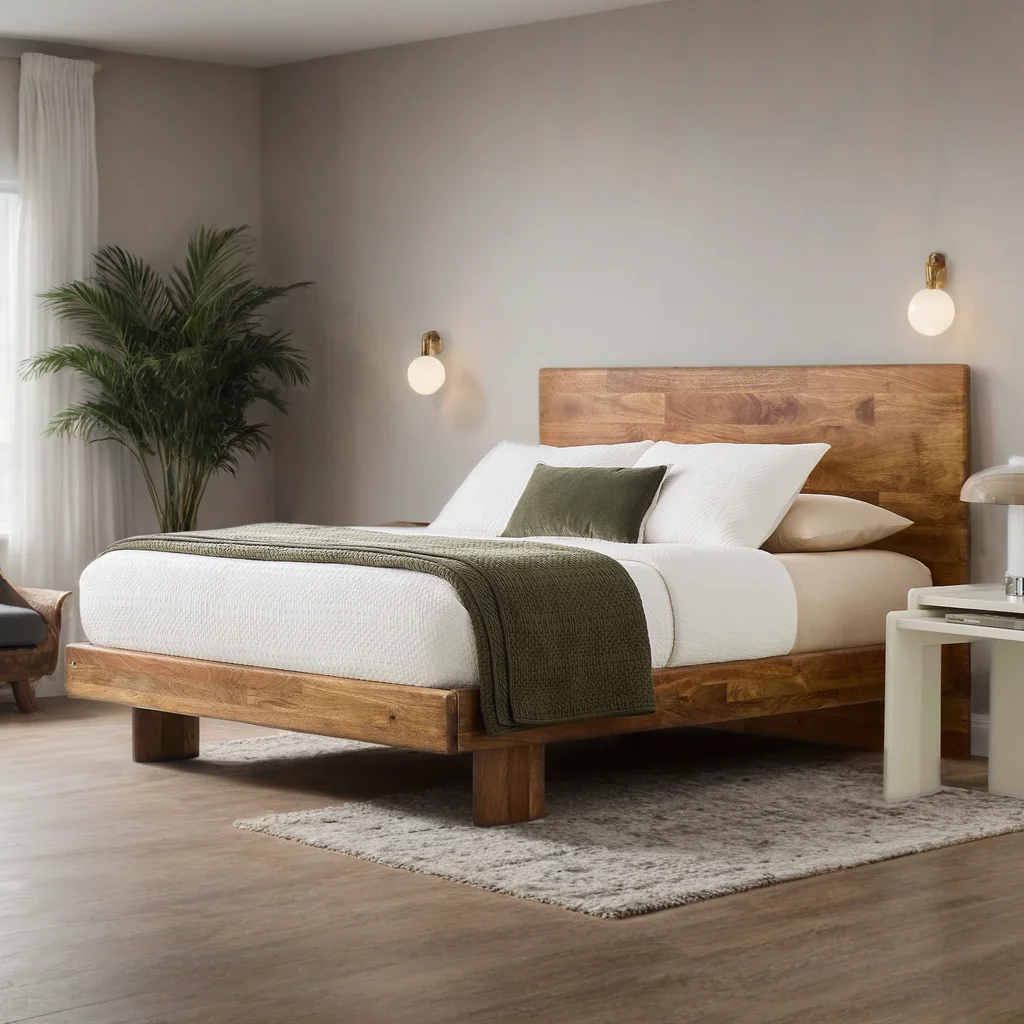 Kiln-dried solid mango wood. Natural variations in wood color and grain make each piece one of a kind. Solid pine wood slats are included. Middle support legs included. Accommodates most standard mattresses; box springs are optional.
