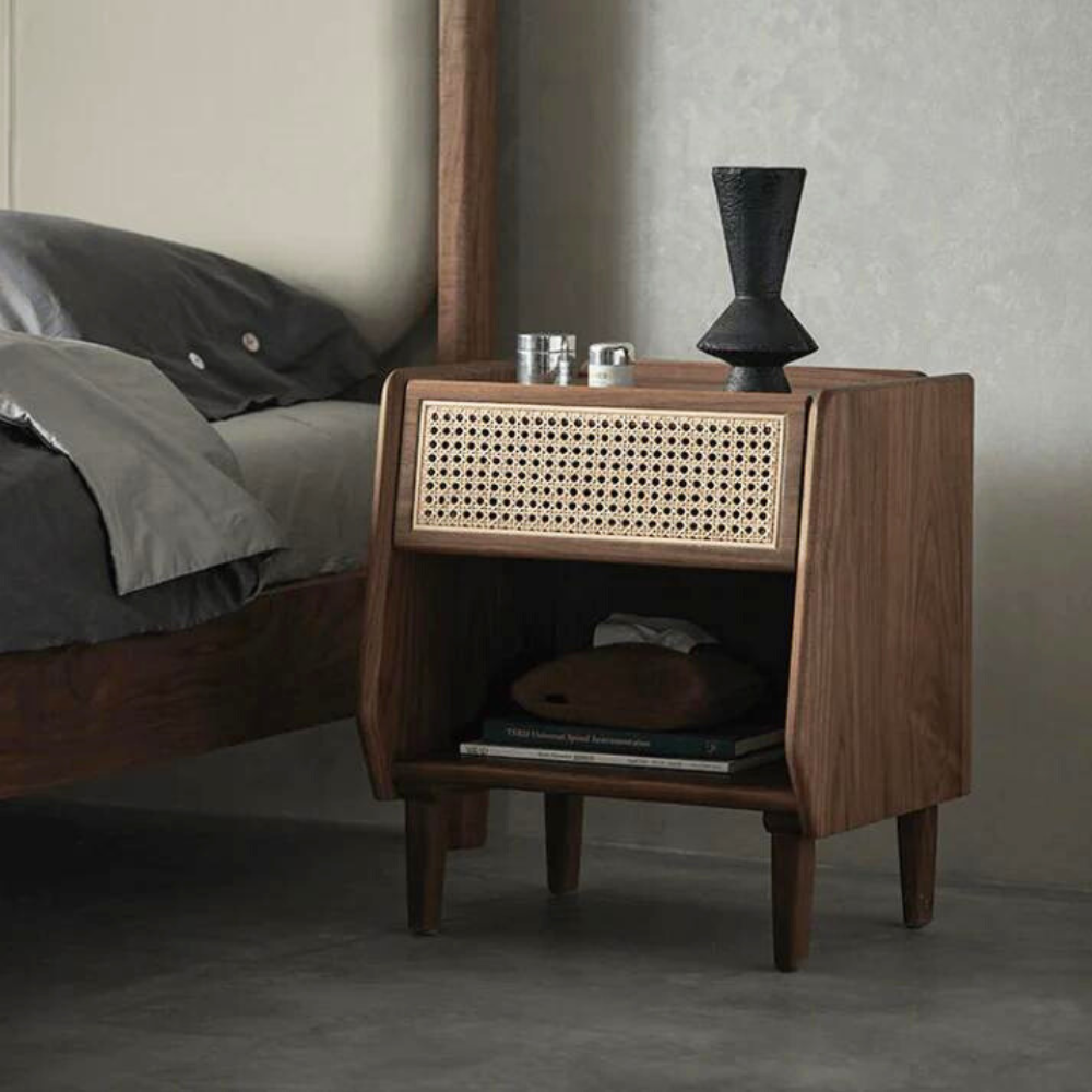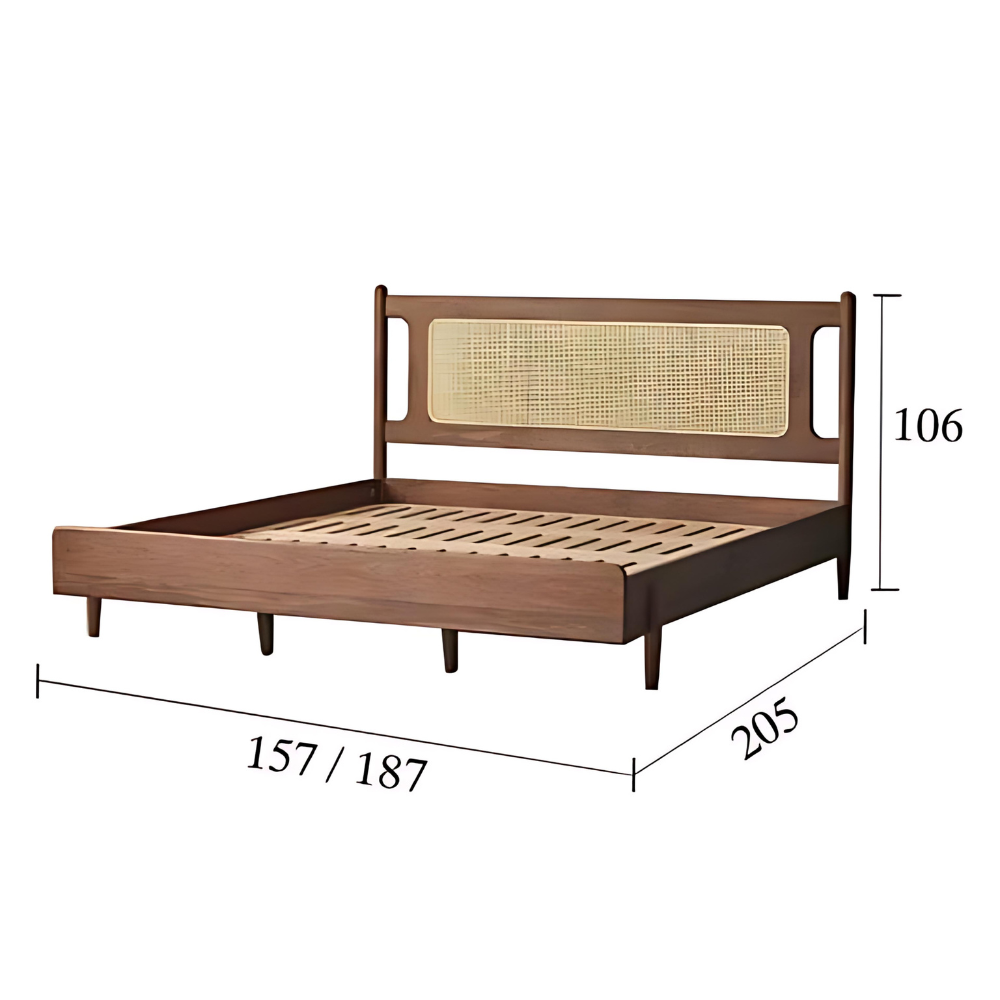 Experience the perfect blend of modern minimalism and natural elegance with our Hakan Rattan Bed, beautifully finished in a rich black walnut color. This bed stands out with its exceptional use of high-quality materials, including North American FAS-grade White Waxwood and meticulously handwoven rattan, ensuring both style and durability.