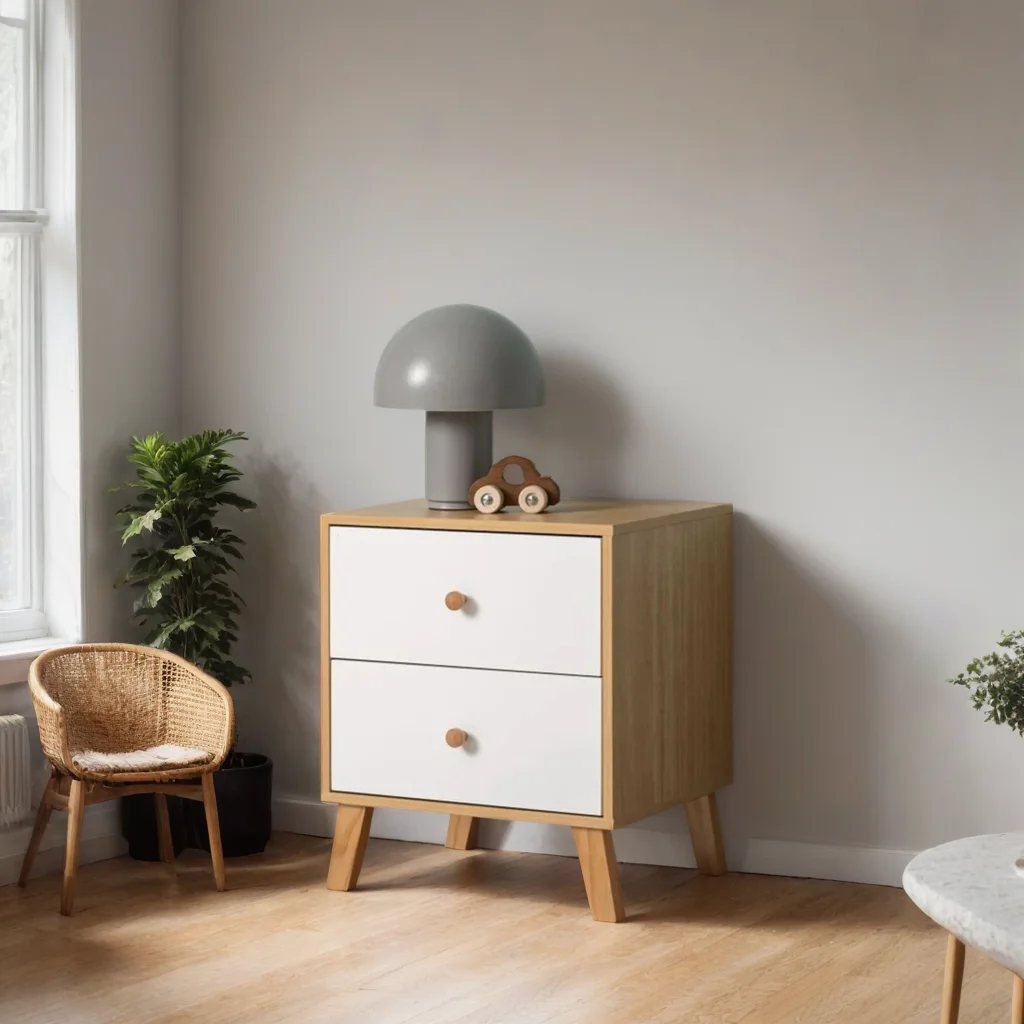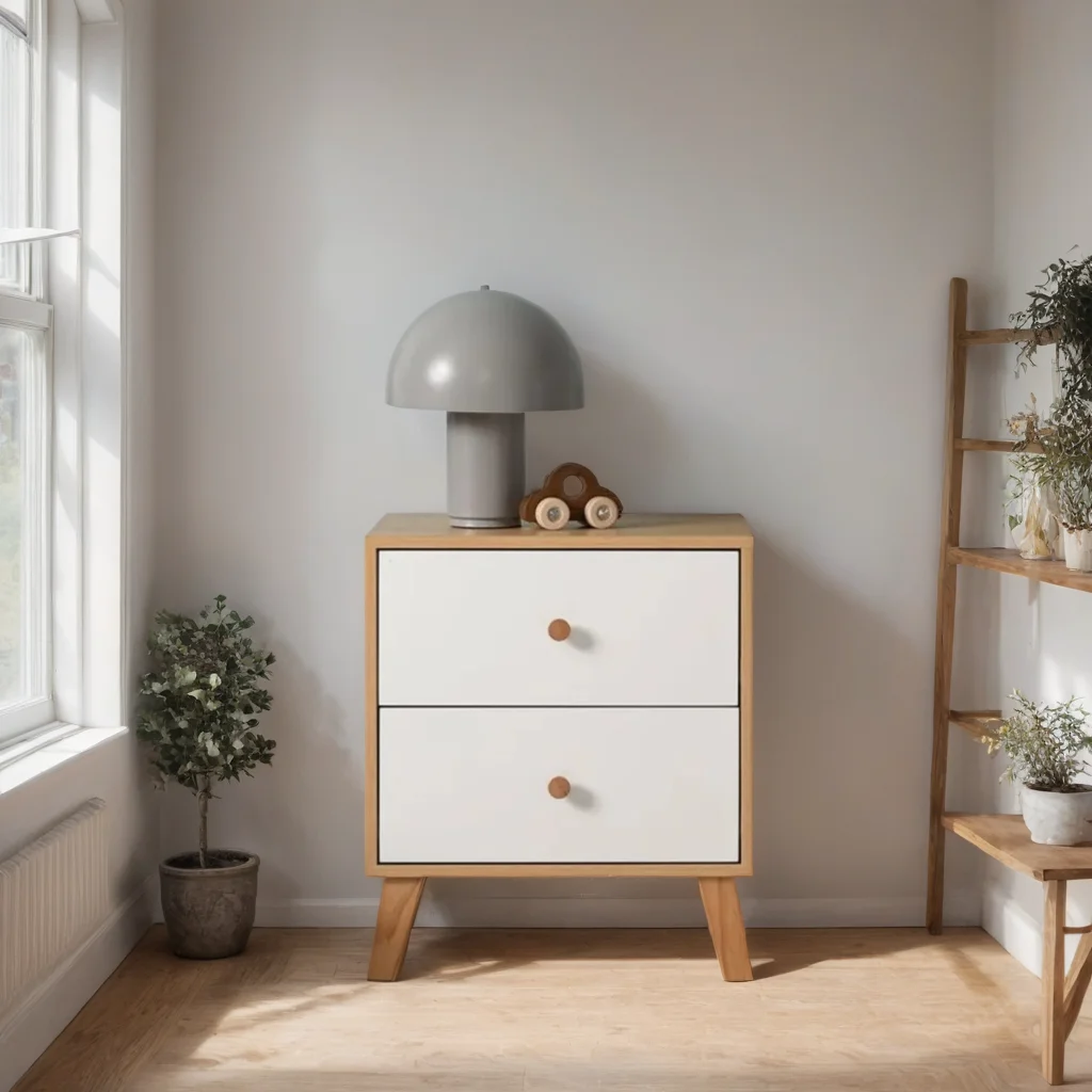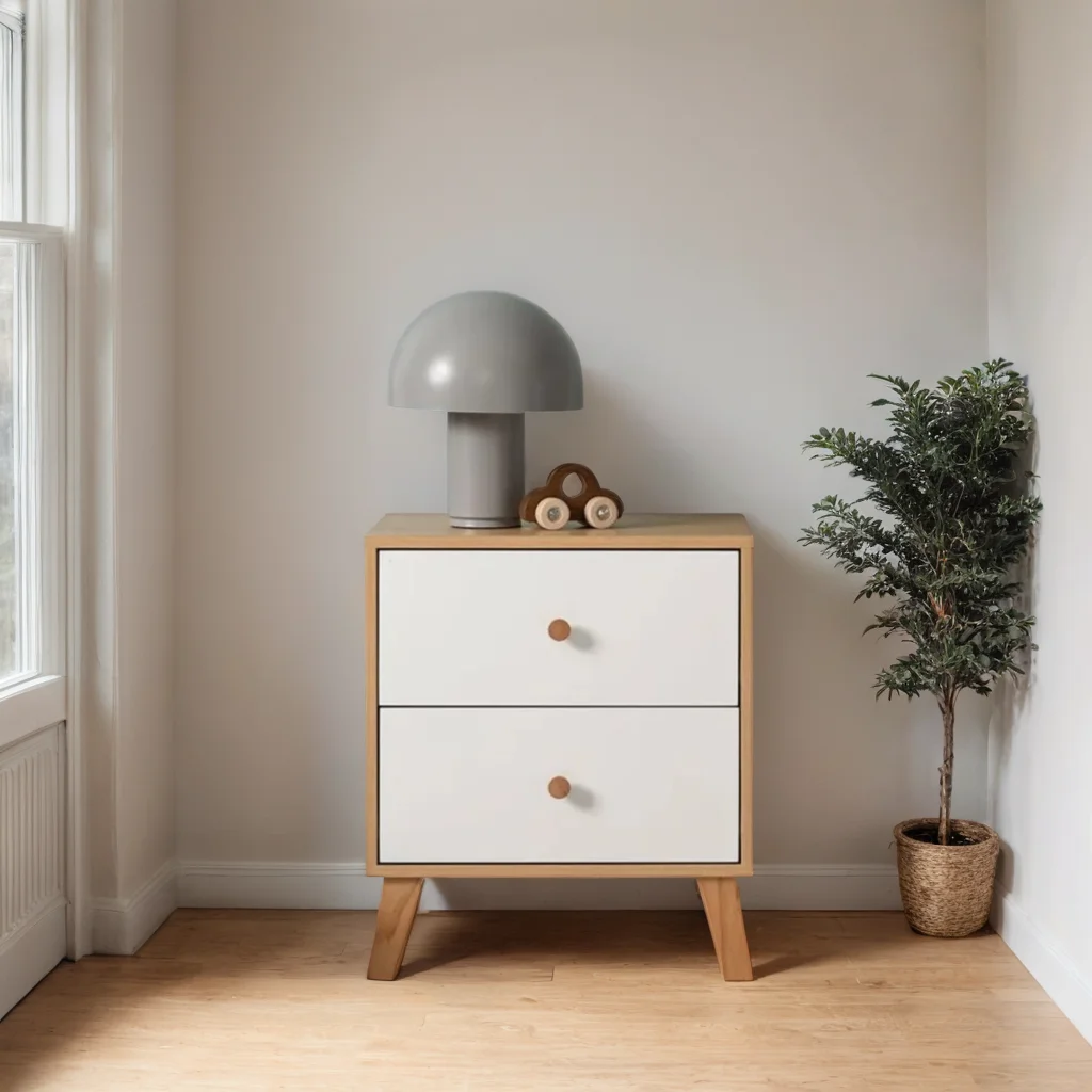 The Baxter Bedside Table is a side table dresser with a chic, everyday style. Celebrating modern design, this compact side table is ideal as a bedside table for any master bedroom, kids’ bedroom, and more. Offering ample bedroom storage without the clutter, the two sliding drawers are perfect for storing clothes, books, and night-time essentials.