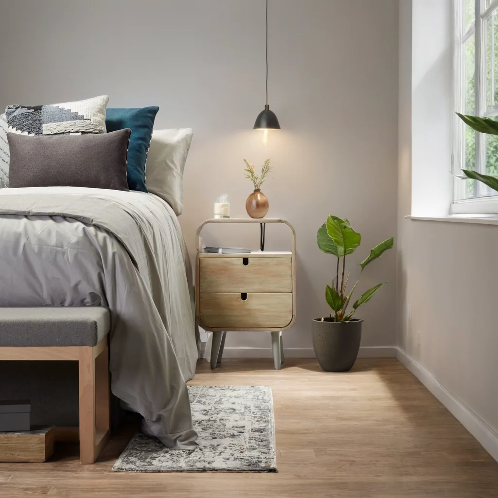 Solid Wood Bedside Table for Living Room – Natural Finish
