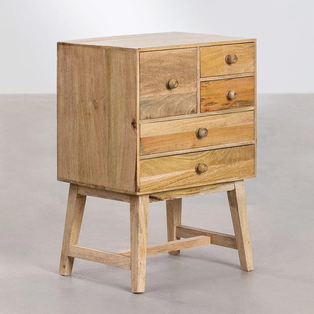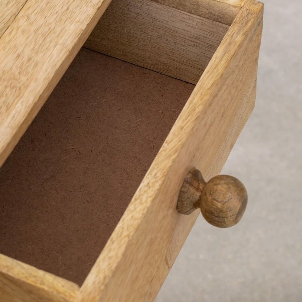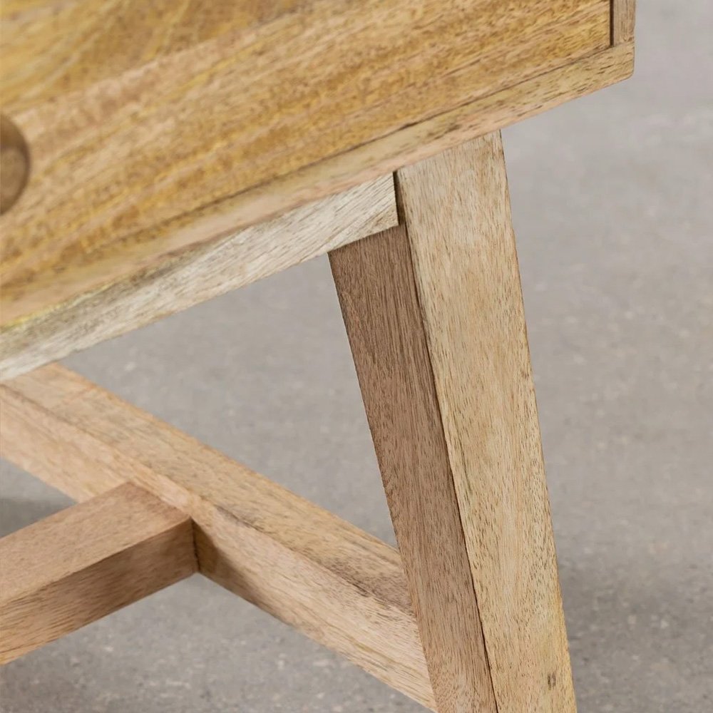 The bedroom is our place of relaxation and it should provide us with comfort and keeping it organized will help to achieve that. The Mango Wood Bedside Table Redfern will be a great accomplice as a storage unit since it has two large drawers to keep everything organized. Made of mango wood, a material that not only makes it resistant but also makes it an elegant piece of furniture due to the long-lasting shine of its wood. You can combine it with more elements made of the same material and the same wood carving that you will find on our website and create a magical room.