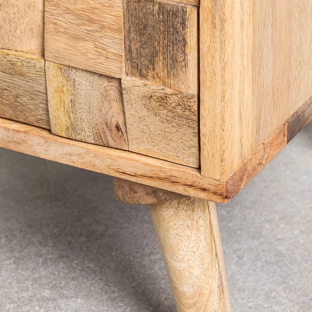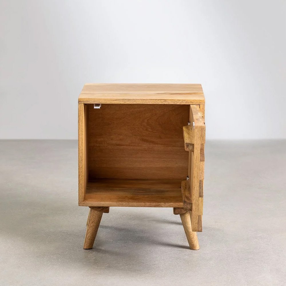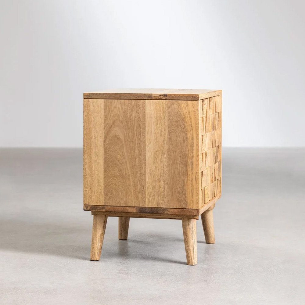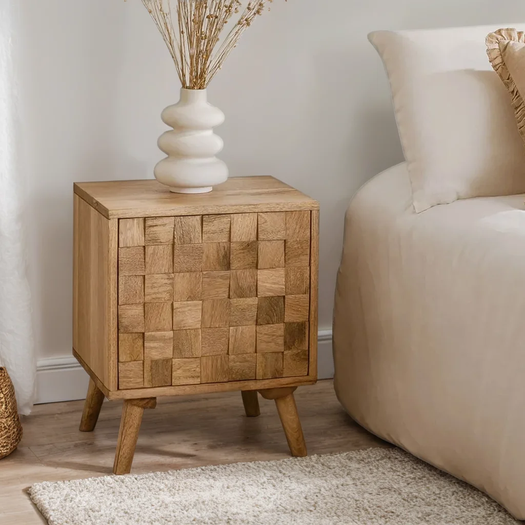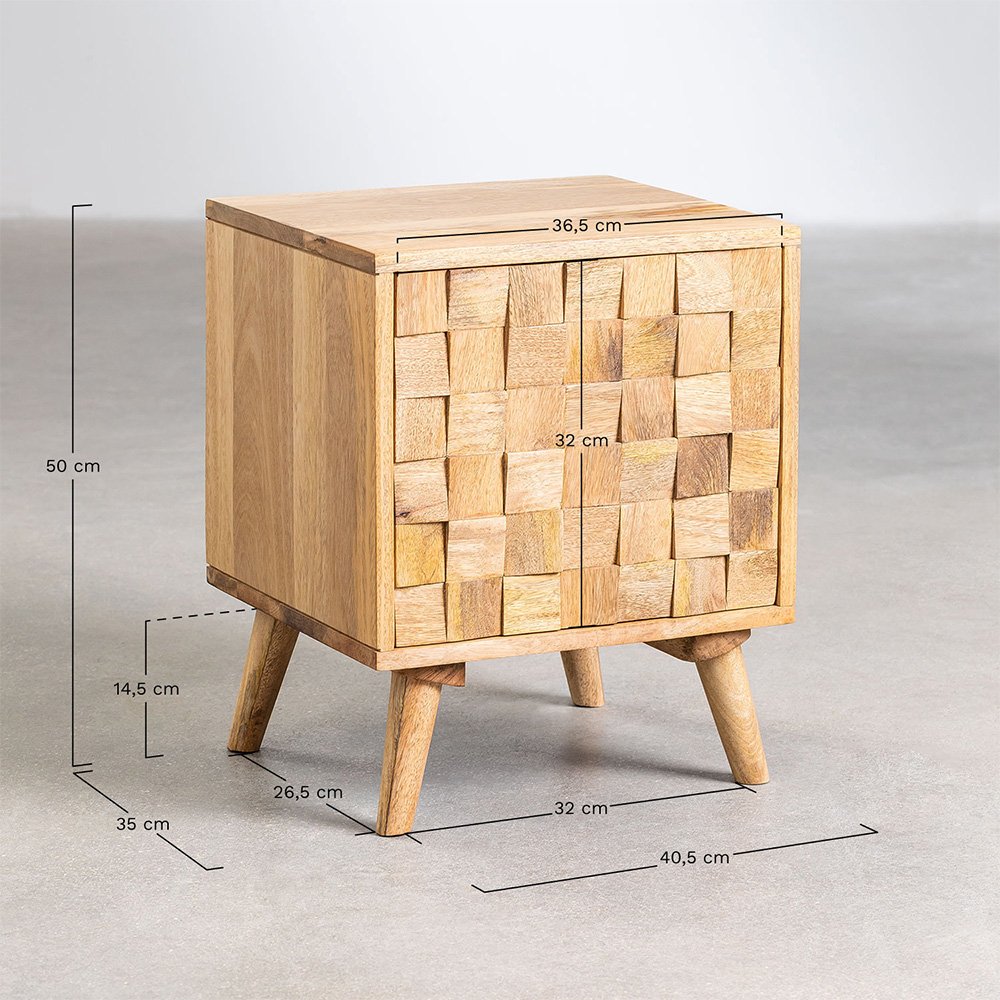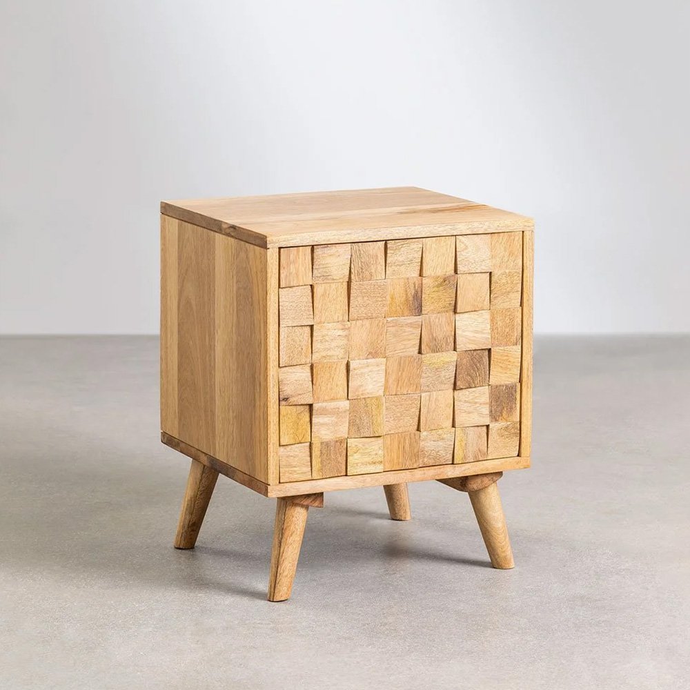 When choosing a bedside cabinet, we must take into account the rest of the bedroom furniture so that we preserve a balanced decoration style. At FURNDUNE you can find elegant, modern, classic, consoles… all with a lot of personality like the Mango Wood Bedside Cabinet Sandhurst. Its square shape stands out from the original front design of the door in the form of a mosaic with small embossed squares. It is made of resistant 100% mango wood, the door includes a push-open and soft-close mechanism. It has rubber pads on the legs to protect the most delicate floors.