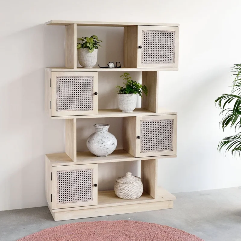 A Storage Bookshelf is a functional and aesthetically pleasing piece of furniture designed to store and display books, decorative items, or other belongings. It is constructed entirely from solid wood, making it sturdy, and durable, and adding a touch of natural beauty to any room. solid wood storage bookshelf is a functional storage solution and a piece of furniture that adds warmth and character to your living space.