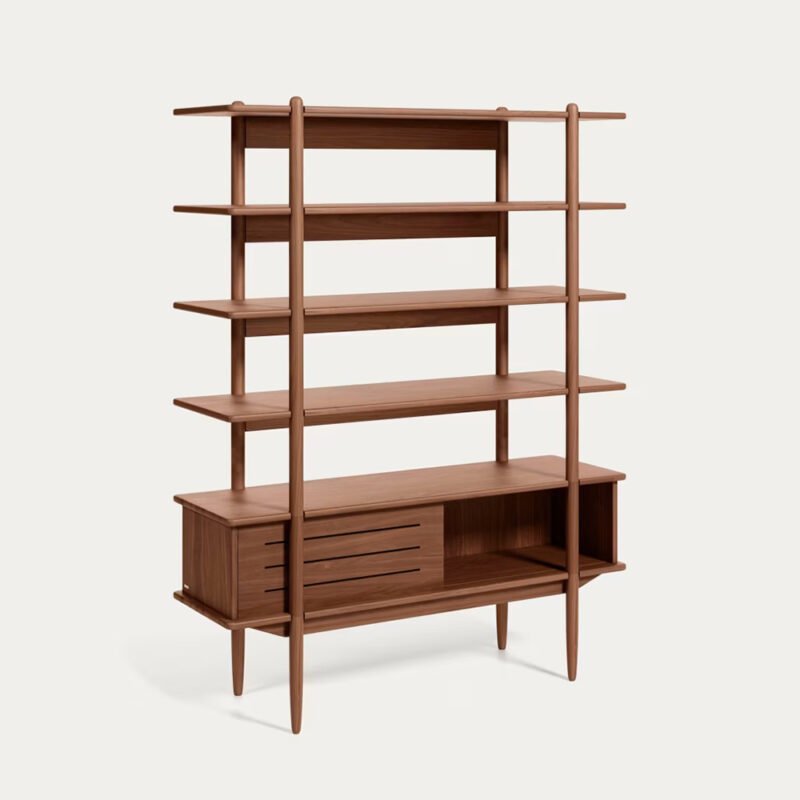 Our popular Amberedge collection brings its cool vibe into the office, family room, or library as a modular storage solution with style to spare. The clean-lined design gives rise to shelves made of beautiful walnut solid wood in this timeless bookcase by Furndune exclusive.