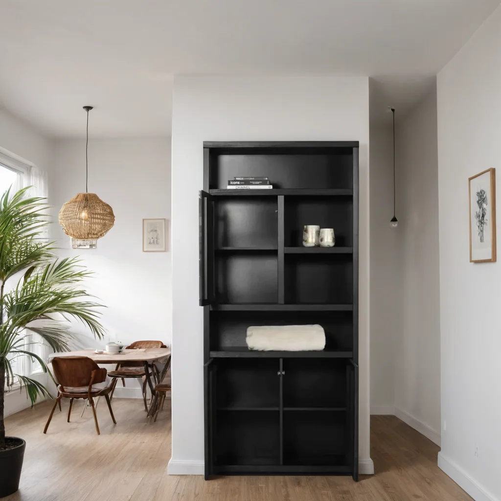 The Ashtrail Bookshelf are made of solid mango wood and finished in a cool black color. The doors are handleless and easy to open using the push-open system. With the open compartments of the cabinets, you have enough space to decorate nicely, for example; photo frames, books, souvenirs, and of course the trendiest accessories. Mix and match the different furniture and go for that nice home feeling!