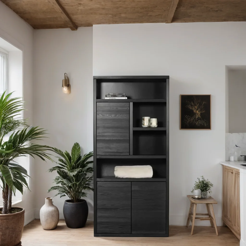 A Storage Bookshelf is a functional and aesthetically pleasing piece of furniture designed to store and display books, decorative items, or other belongings. It is constructed entirely from solid wood, making it sturdy, and durable, and adding a touch of natural beauty to any room. solid wood storage bookshelf is a functional storage solution and a piece of furniture that adds warmth and character to your living space.