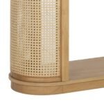 Natural rattan accents have a relaxed, coastal vibe. Made of solid wood, known for its flexibility and strength. Plenty of shelving for your favorite books, photos, vases, and more.