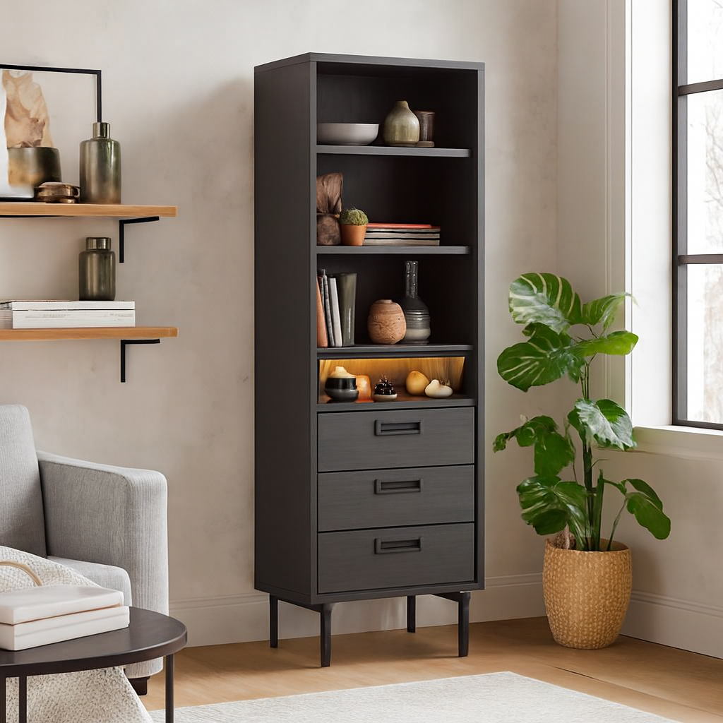 A Storage Bookshelf is a functional and aesthetically pleasing piece of furniture designed to store and display books, decorative items, or other belongings. It is constructed entirely from solid wood, making it sturdy, and durable, and adding a touch of natural beauty to any room. solid wood storage bookshelf is a functional storage solution and a piece of furniture that adds warmth and character to your living space.