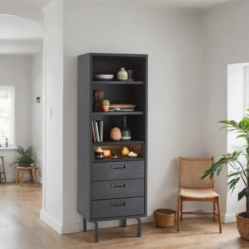 A Storage Bookshelf is a functional and aesthetically pleasing piece of furniture designed to store and display books, decorative items, or other belongings. It is constructed entirely from solid wood, making it sturdy, and durable, and adding a touch of natural beauty to any room. solid wood storage bookshelf is a functional storage solution and a piece of furniture that adds warmth and character to your living space.