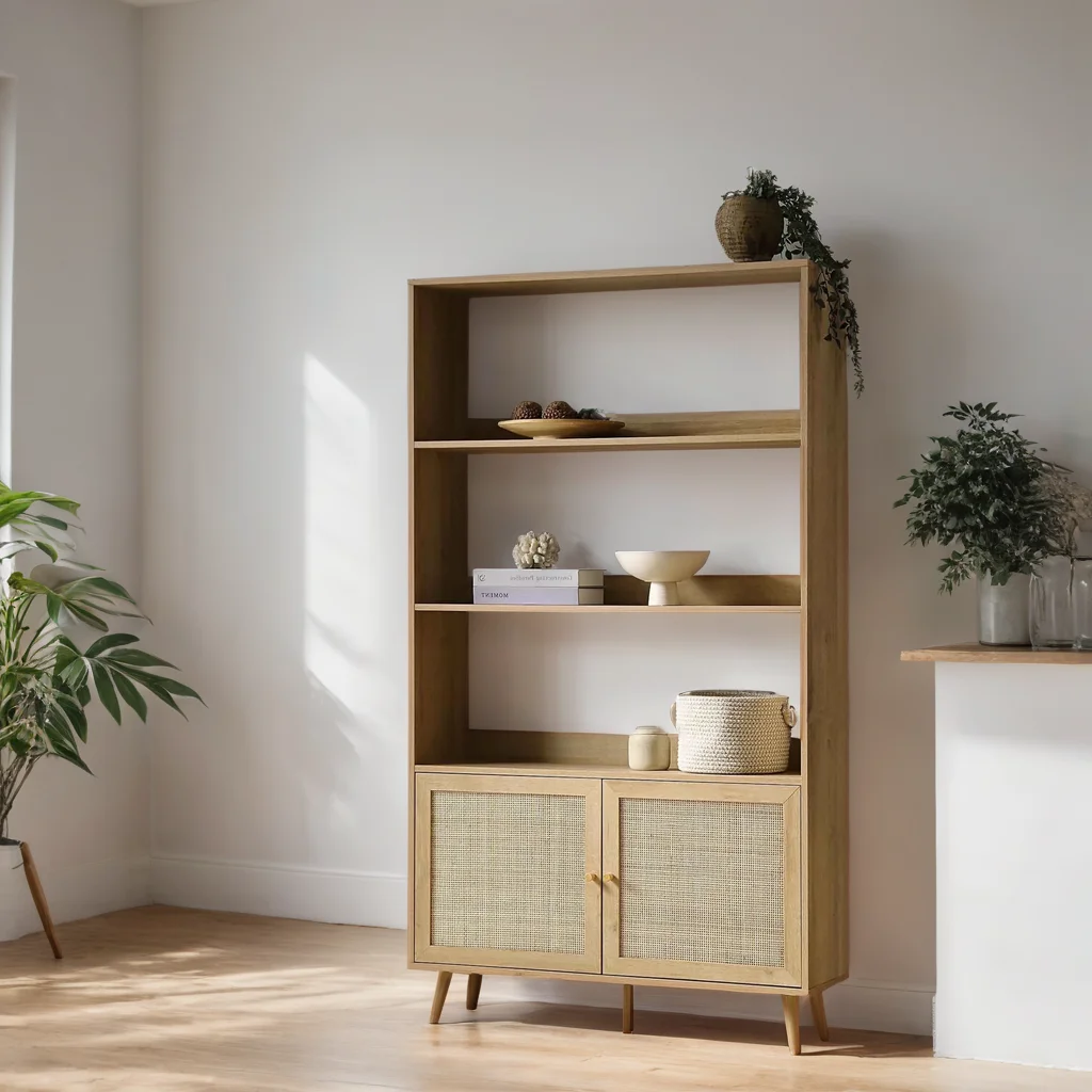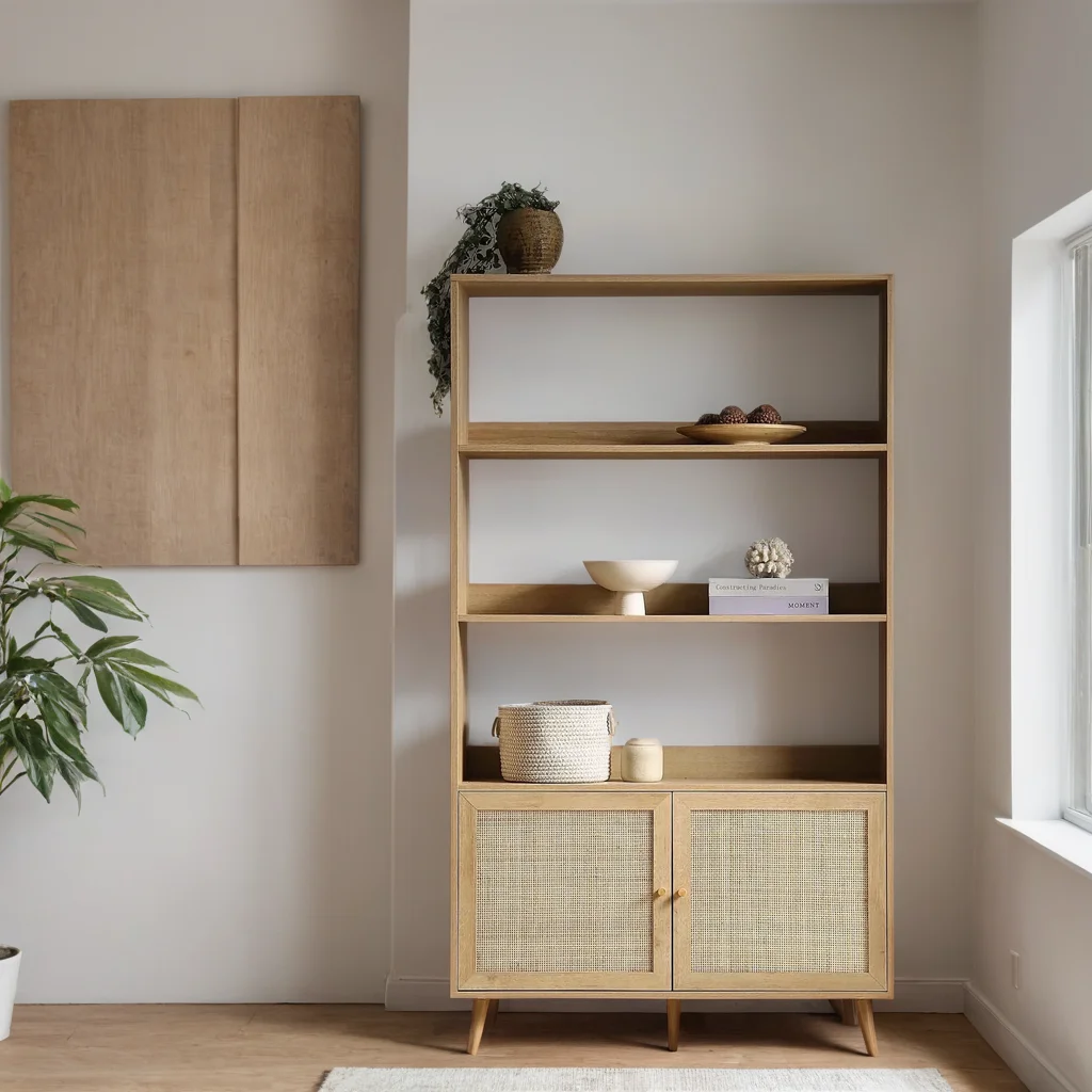 The perfect amalgamation of wood and natural rattan, our Valebrook Rattan Bookcase with Doors exudes a beautiful boho style and offers a simple yet stylish storage solution. With three display shelves, there is a large amount of space to hold your books or display any ornaments.