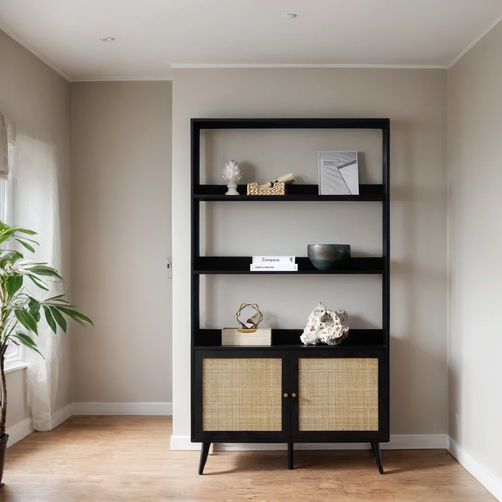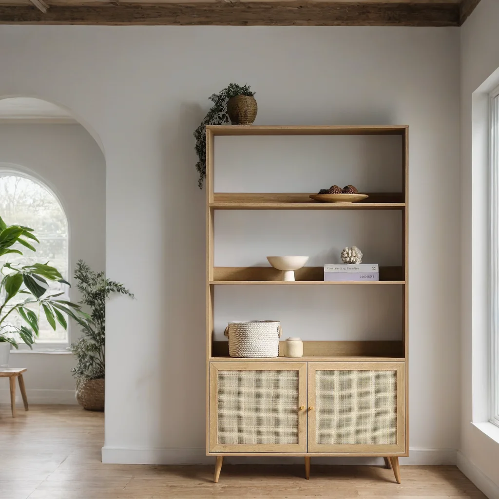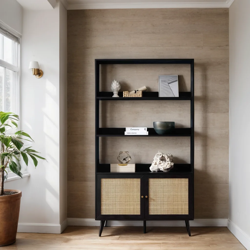 Ivory Elegance Solid Wood Valebrook Rattan Bookcase with Doors