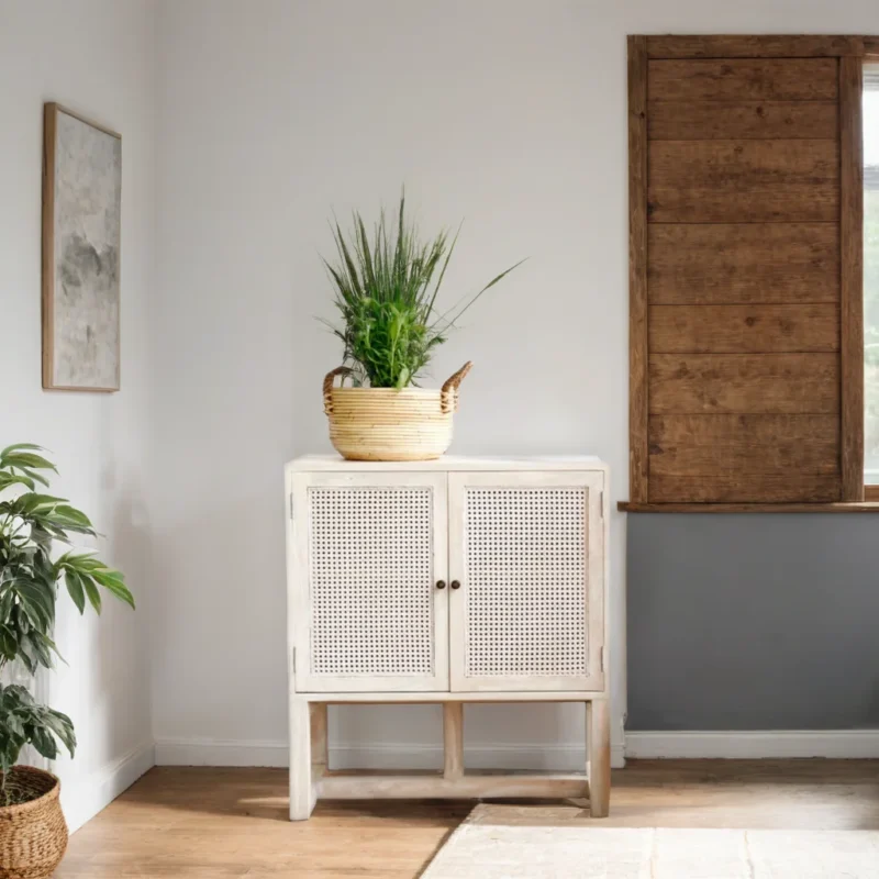 • Ironcliff Cabinet in solid wood. Unique design with rounded edges and reliefs on the doors.