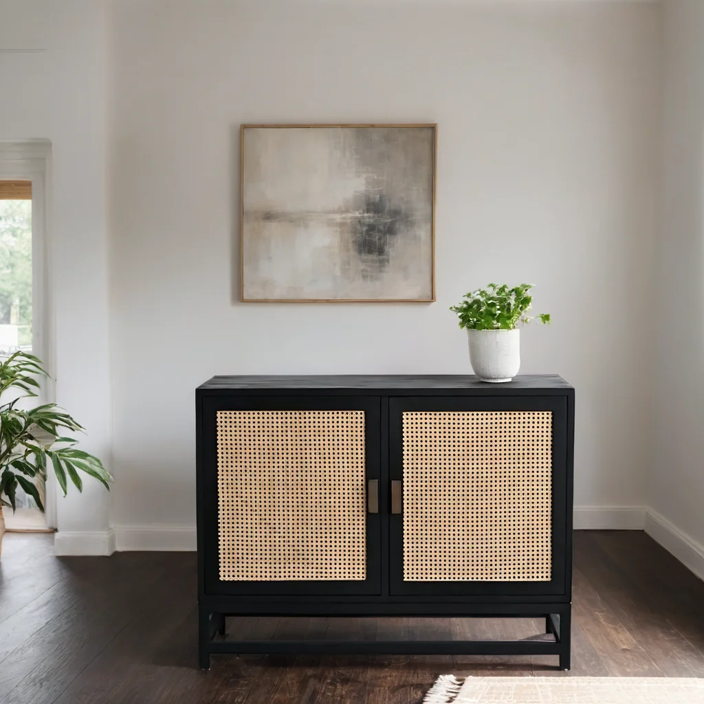 Make a bold statement in your home with our Kensvale Black Cabinet, an exquisite addition that combines practicality and style. Crafted from a mix of solid wood, this handcrafted cabinet brings a touch of nature’s beauty into your living space.