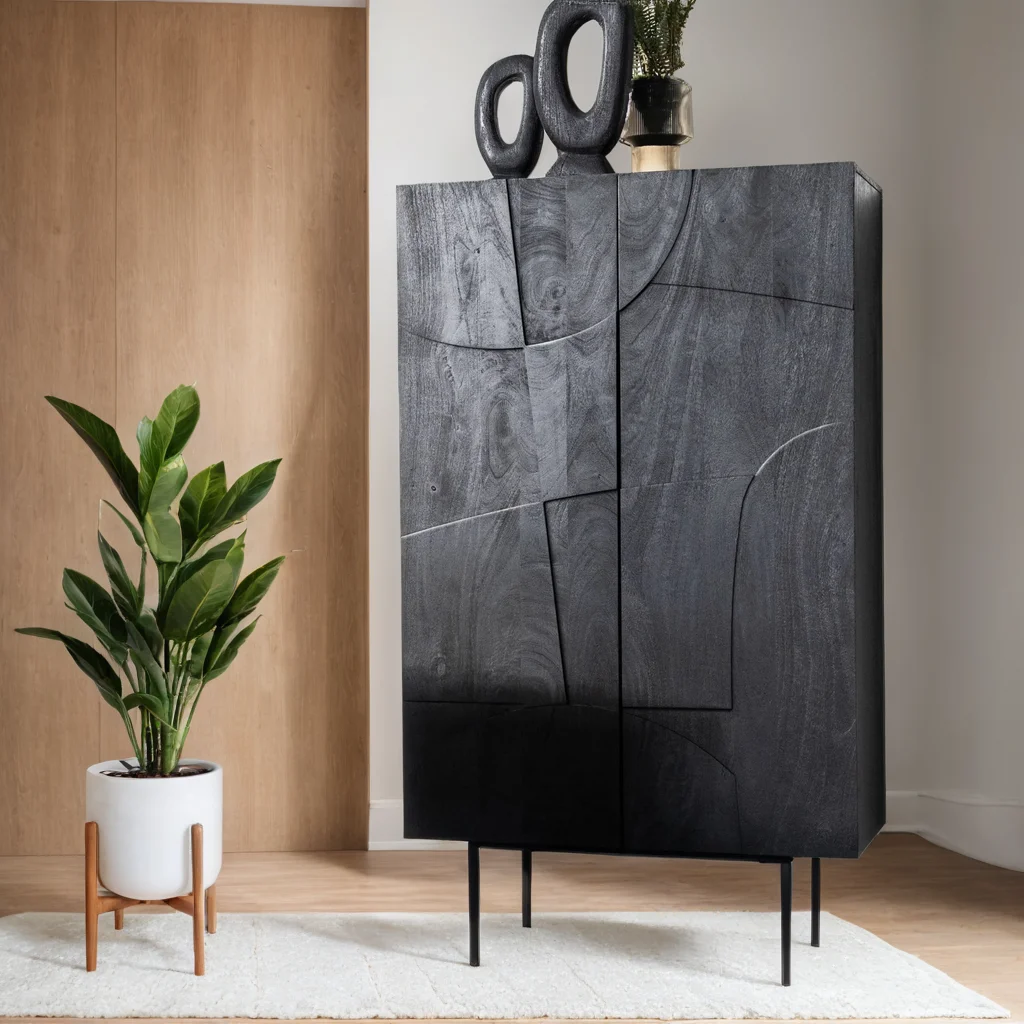 Geometric shapes adorn the face of the Mapleford Storage Cabinet boasting all the colors, grains, and textures that can only be brought by solid Mango Wood.