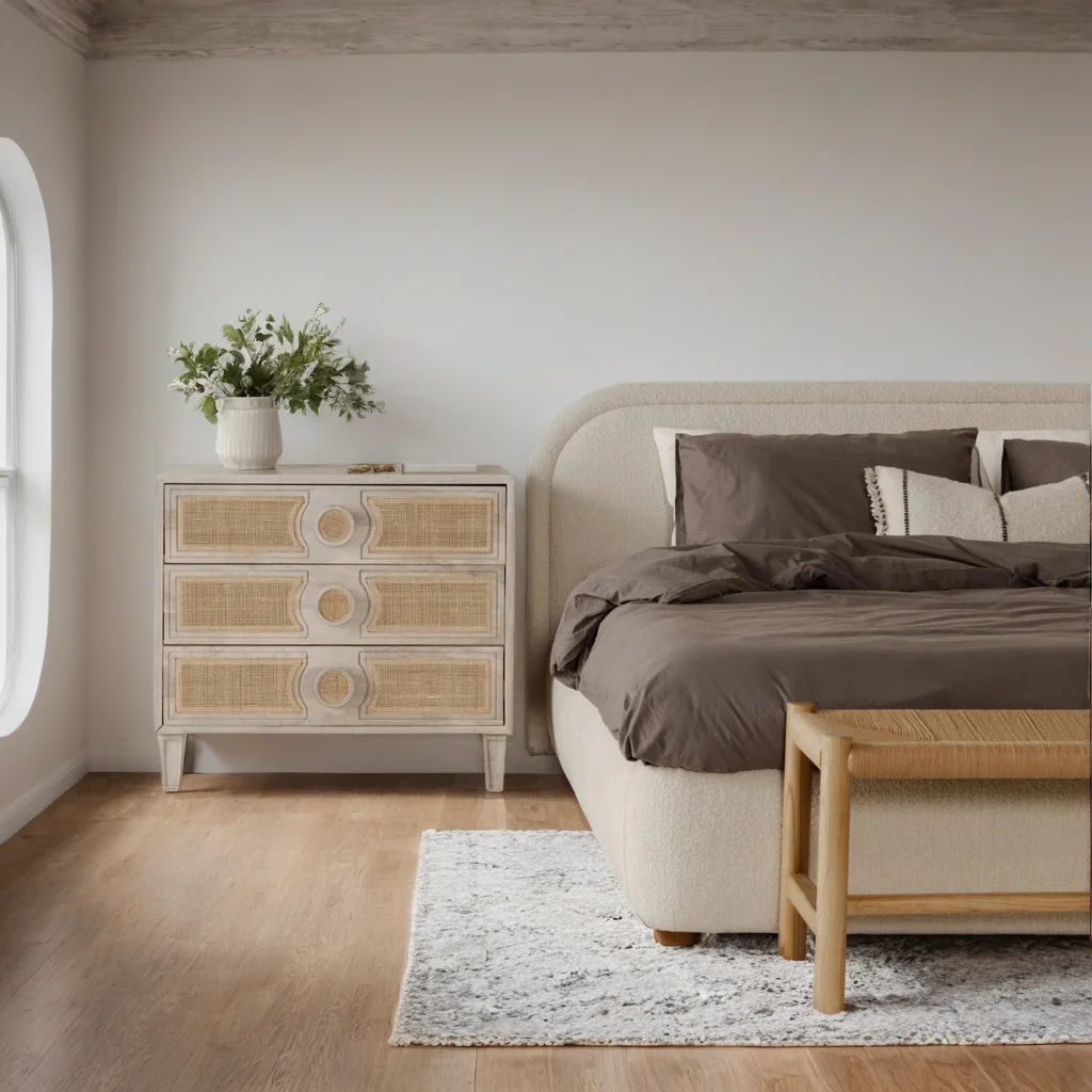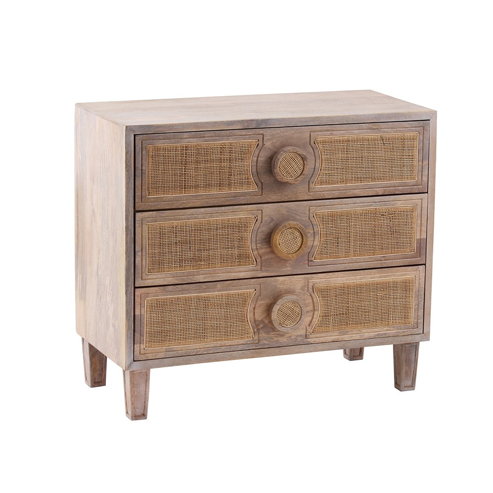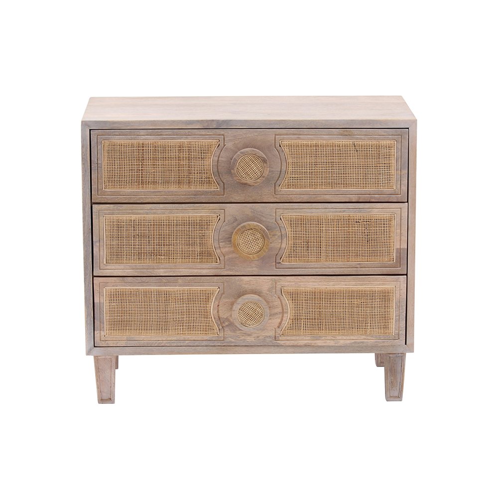 It is nicely Nordic and made with your bedroom in mind. A stylish combination of solid mango wood and natural woven cane detailing gives this dresser a freshly refined. With three spacious drawers that help maximize storage for smaller bedrooms, this dresser is perfect for keeping clothes and other items stored away. Sturdy legs for lasting durability, and side-mounted drawers for smooth-sliding access.