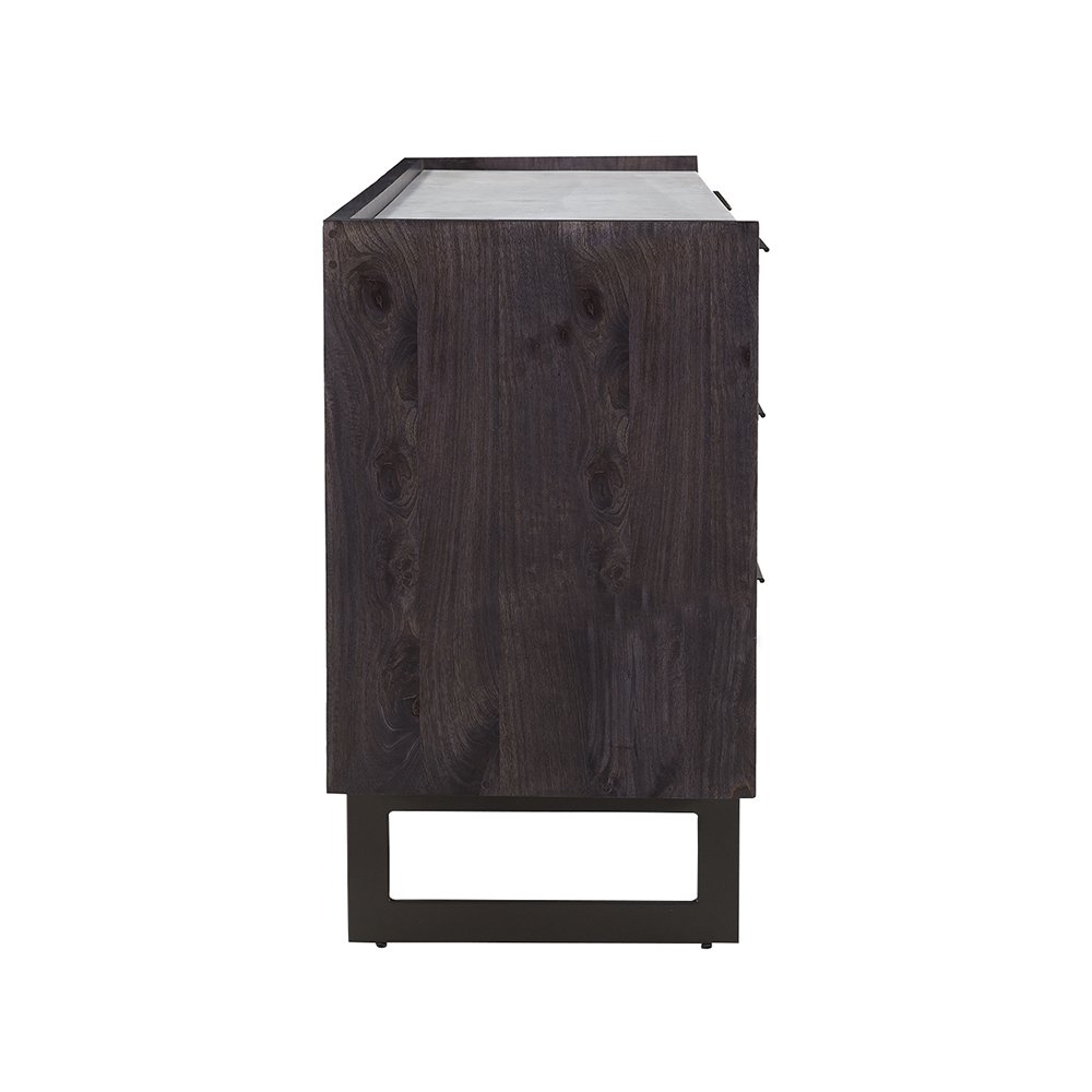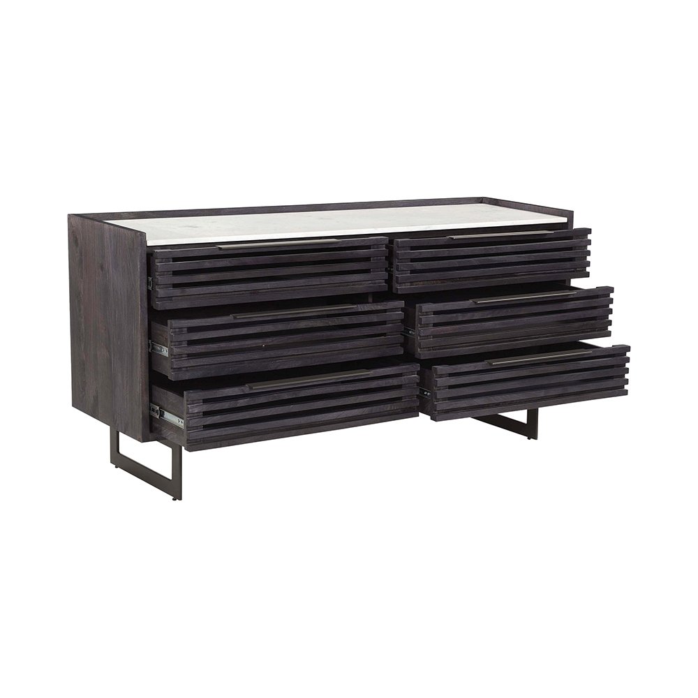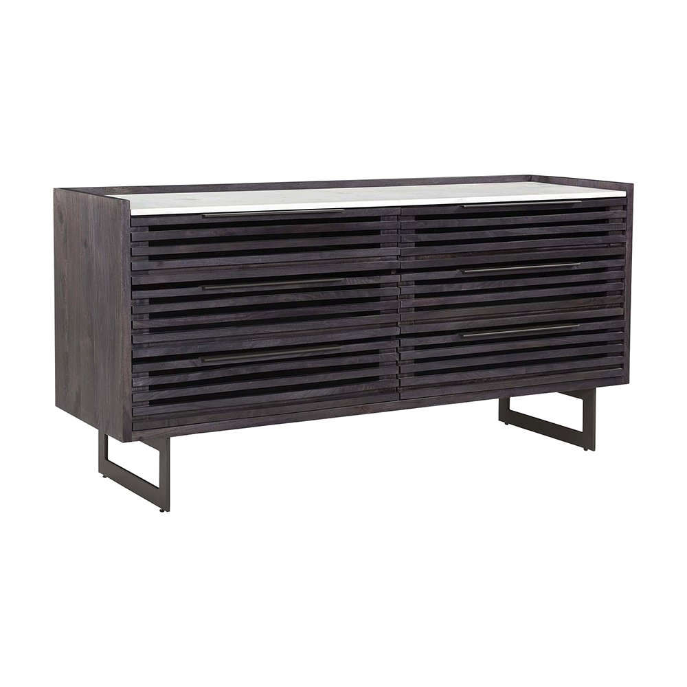 Crafted from ethically sourced solid mango wood, the Grantham 6-drawer dresser’s ribbed front underscores. The timeless design offers practical storage and unique visual depth centered on the elemental appeal of its natural materials.