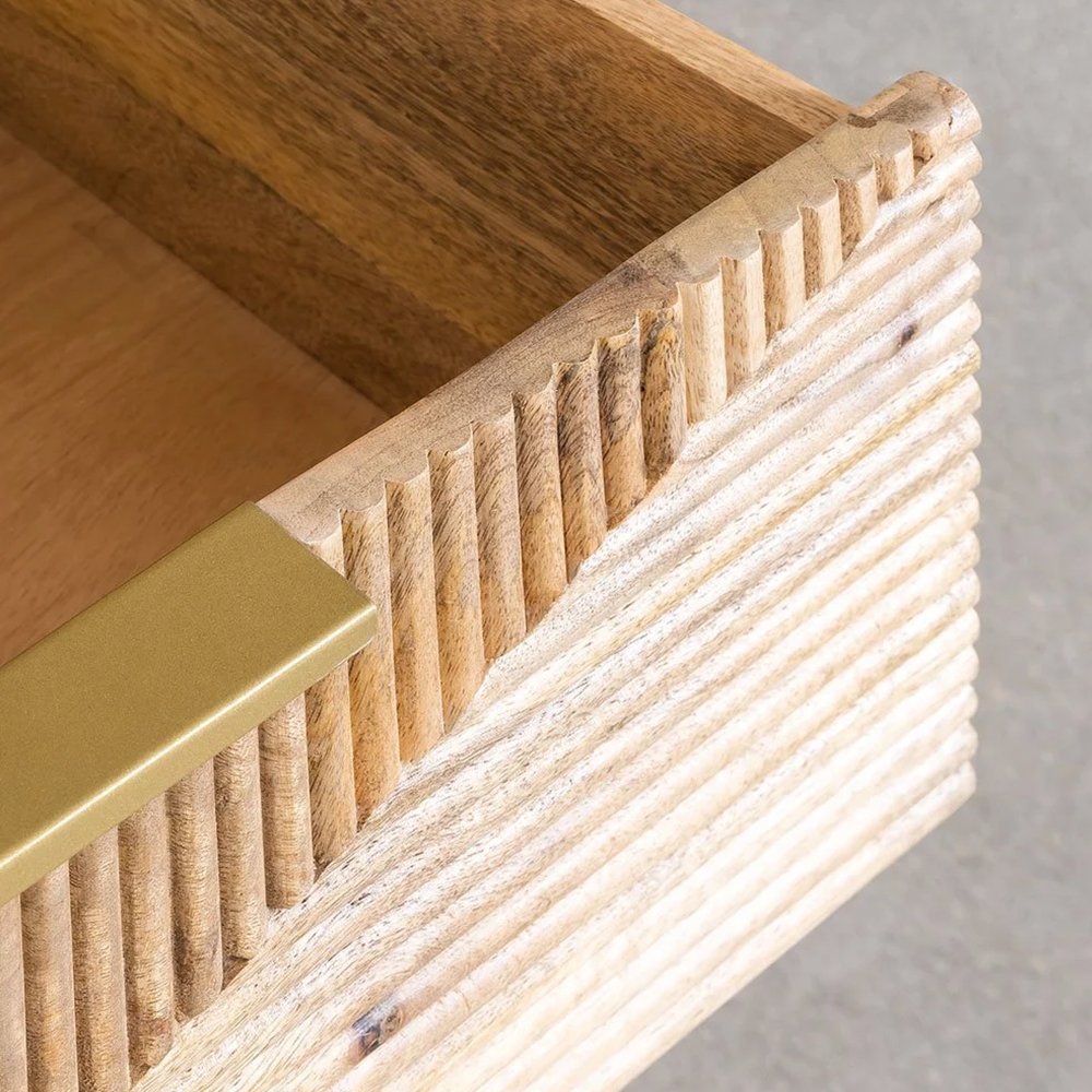 If you are looking for a practical and functional storage unit, but do not want to give up design and elegance, our Morley Chest of Drawers in Wood is perfect for you. In a natural style, it has 3 large drawers, with metal closures, which will help you maintain order in your living room, bedroom, or in any room. Made of mango wood, it stands out for being a chest of drawers of natural beauty since this type of wood has veins and chestnut brown coloration with reddish tones. You can integrate it with different decorative styles and combine it with the other furniture in the Morley collection. Remember that each piece is unique, with its details and variations due to its material.