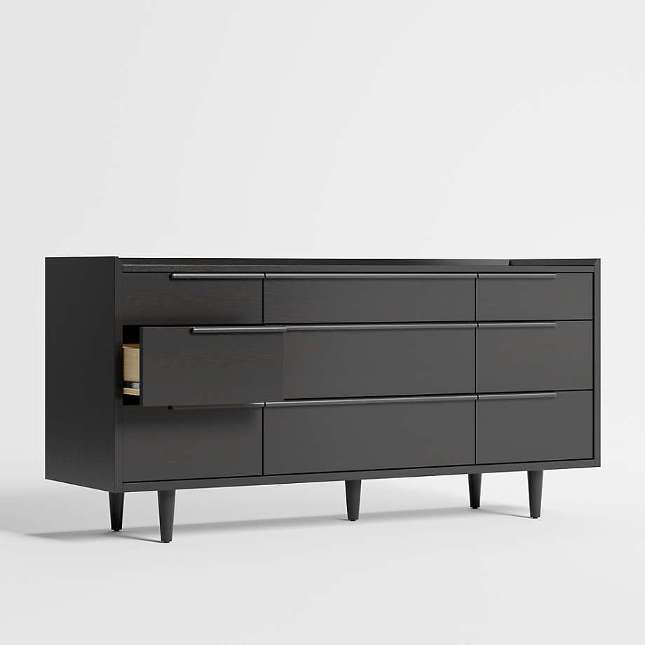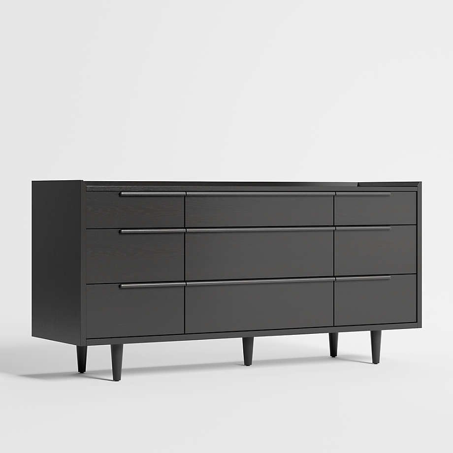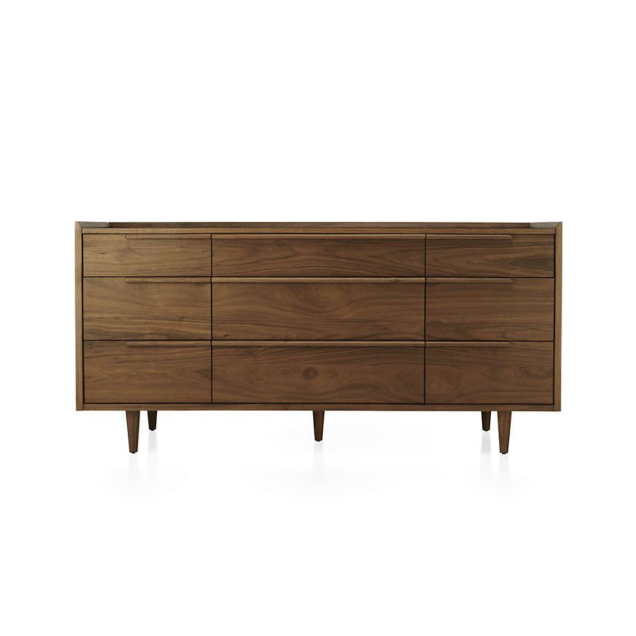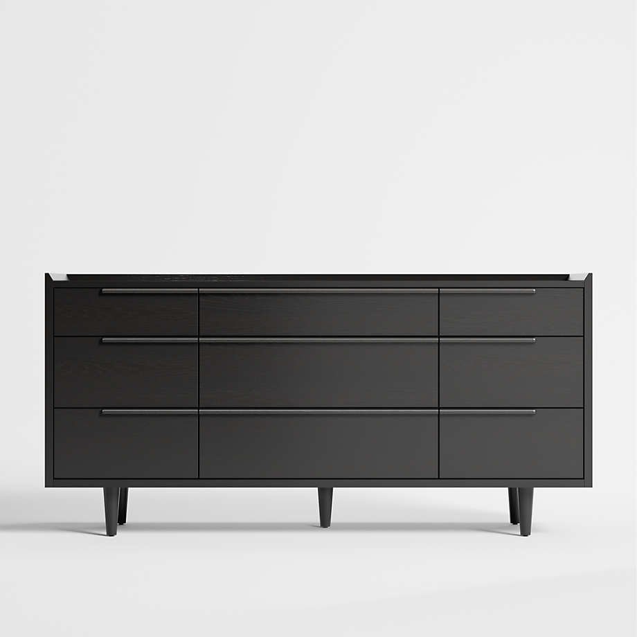 The horizontal dresser presents a continuous front with nine drawers of varying sizes. Designed by Furndune.