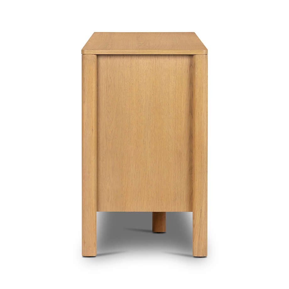 Keep your bedroom organized and put together with our Wilsthorpe solid wood dresser. Generously sized with four large and three small drawers, the dresser showcases the cathedral graining of solid wood in a timeless design. A pared-down take on traditional molding frames the waterfall profile in clean lines, while decorative key and escutcheon pulls on the top three drawers add a designer touch.